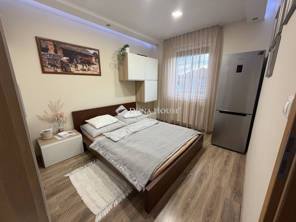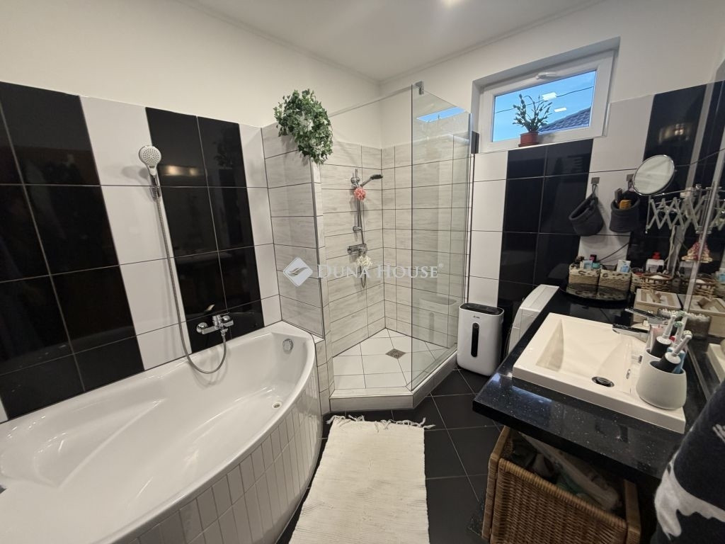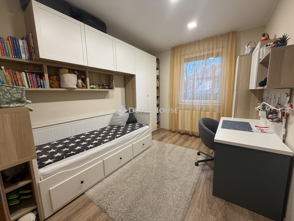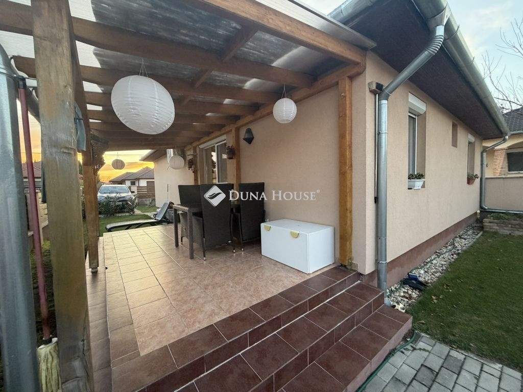 Eladásra kínálok Győrzámoly csendes, rendezett részén egy kiváló állapotú, gondosan karbantartott családi házat, amely kiváló műszaki háttérrel és kényelmes elrendezéssel várja új tulajdonosát!A ház 2014-ben 30 cm-es Porotherm téglából épült, 15 cm hőszigeteléssel, fafödémmel és betoncseréppel fedett tetővel. A padlástérben 30 cm szigetelés található. A fűtést és a meleg vizet Saunier Duval kondenzációs gázkazán szolgáltatja radiátoros rendszerrel, melyet nagy teljesítményű klíma egészít ki hűtésre és rásegítő fűtésre. A nappaliban elhelyezett elektromos kandalló tovább fokozza az otthon melegét és hangulatát.Az ablakokon redőny és szúnyogháló található, a teraszajtón külön nyitható szúnyogháló ajtóval. A kert locsolása kerti csapról történik.A hátsó kert igazán barátságos: kialakított grillező sarokkal, bográcsozási lehetőséggel, magaságyással és egy árnyékot adó sárgabarackfával. A kerti eszközök tárolására egy 12 m²-es kerti tároló szolgál. A kert igényesen parkosított, sok örökzölddel, virággal és gyümölcsfával.Helyiségei:előszobanappaliétkezőkonyha3 hálószobafürdőszobaWCspájzközlekedőfedett teraszAz ingatlan nem régiben teljeskörű festésen esett át, csodálatos, szívmelengető színeket kapott, így már a házba belépve is nagyon otthonos, kellemes érzést nyújt. A környék biztonságos és családbarát, Győr autóval néhány perc alatt elérhető, a közelben pedig óvoda, iskola, bolt, játszótér és sportpálya is található.Ez az otthon tökéletes választás, ha már csak bepakolni szeretne Szigetköz szívében, megfizethető áron.Családoknak, pároknak és befektetőknek egyaránt ideális lehetőség.Ilyen gondosan karbantartott, igényes ingatlan nem kerül minden nap a piacra, ha megtetszett, ne várjon tovább, nézzük meg még ma!Banksemleges hitelügyintézéssel állunk rendelkezésére, a hét minden napján!