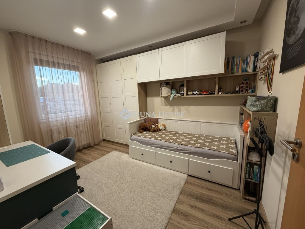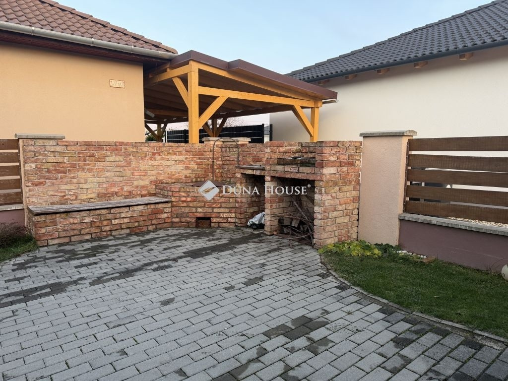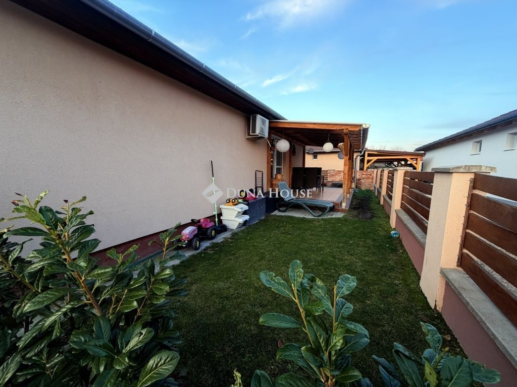 Eladásra kínálok Győrzámoly csendes, rendezett részén egy kiváló állapotú, gondosan karbantartott családi házat, amely kiváló műszaki háttérrel és kényelmes elrendezéssel várja új tulajdonosát!A ház 2014-ben 30 cm-es Porotherm téglából épült, 15 cm hőszigeteléssel, fafödémmel és betoncseréppel fedett tetővel. A padlástérben 30 cm szigetelés található. A fűtést és a meleg vizet Saunier Duval kondenzációs gázkazán szolgáltatja radiátoros rendszerrel, melyet nagy teljesítményű klíma egészít ki hűtésre és rásegítő fűtésre. A nappaliban elhelyezett elektromos kandalló tovább fokozza az otthon melegét és hangulatát.Az ablakokon redőny és szúnyogháló található, a teraszajtón külön nyitható szúnyogháló ajtóval. A kert locsolása kerti csapról történik.A hátsó kert igazán barátságos: kialakított grillező sarokkal, bográcsozási lehetőséggel, magaságyással és egy árnyékot adó sárgabarackfával. A kerti eszközök tárolására egy 12 m²-es kerti tároló szolgál. A kert igényesen parkosított, sok örökzölddel, virággal és gyümölcsfával.Helyiségei:előszobanappaliétkezőkonyha3 hálószobafürdőszobaWCspájzközlekedőfedett teraszAz ingatlan nem régiben teljeskörű festésen esett át, csodálatos, szívmelengető színeket kapott, így már a házba belépve is nagyon otthonos, kellemes érzést nyújt. A környék biztonságos és családbarát, Győr autóval néhány perc alatt elérhető, a közelben pedig óvoda, iskola, bolt, játszótér és sportpálya is található.Ez az otthon tökéletes választás, ha már csak bepakolni szeretne Szigetköz szívében, megfizethető áron.Családoknak, pároknak és befektetőknek egyaránt ideális lehetőség.Ilyen gondosan karbantartott, igényes ingatlan nem kerül minden nap a piacra, ha megtetszett, ne várjon tovább, nézzük meg még ma!Banksemleges hitelügyintézéssel állunk rendelkezésére, a hét minden napján!
