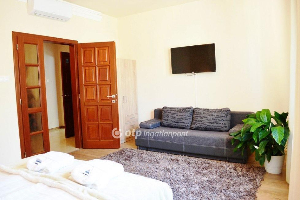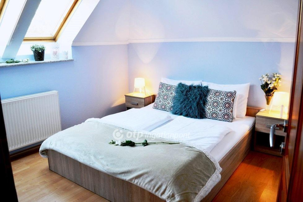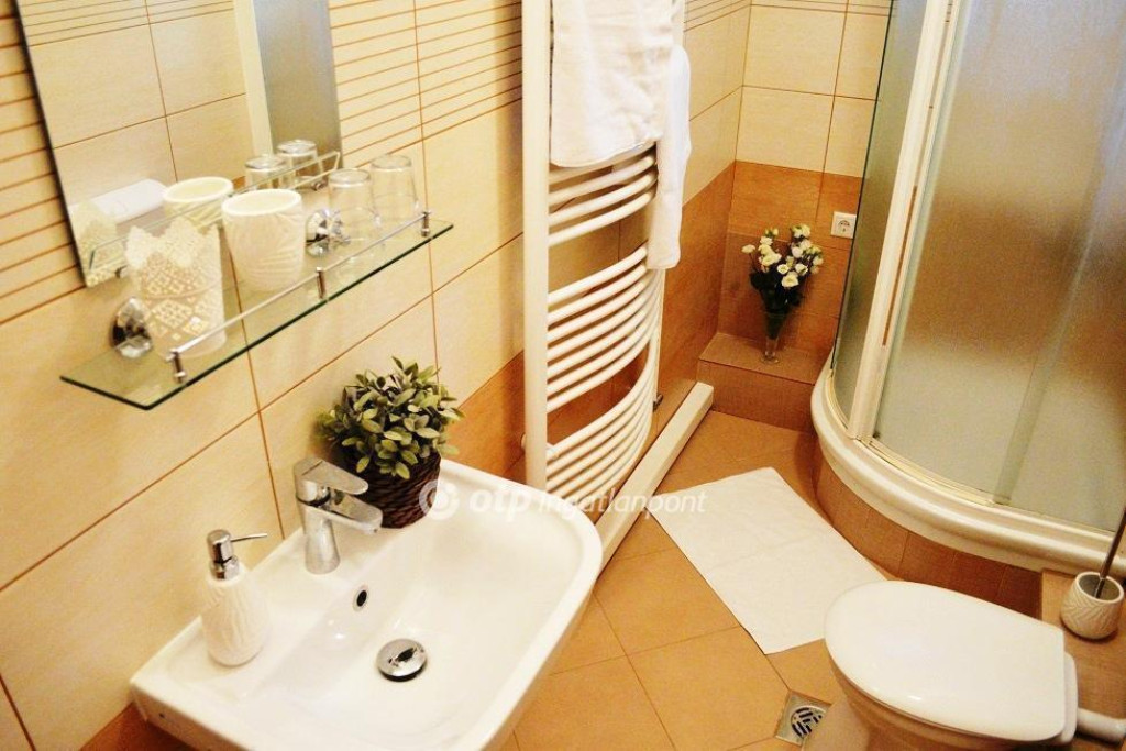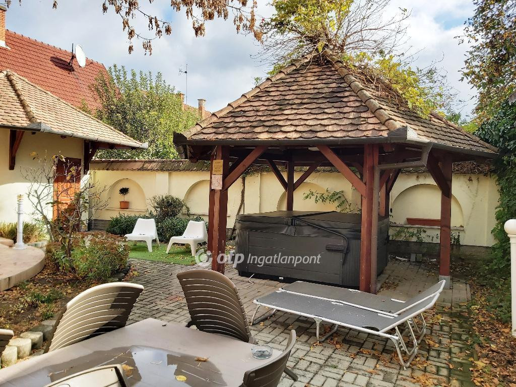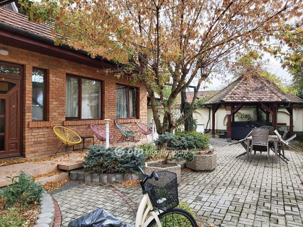 GYULÁN APARTMAN HÁZ ELADÓ. A tégla falazatú, két szintes, 260 nm-es ingatlan a várfürdőhöz és a középkorban épült egyetlen épen maradt tégla várhoz közel, 520 nm-es telken helyezkedik el. Az alsó szinten, ami családi háznak épült, amerikai konyhás nappali, egy hálószoba, két félszoba, fürdőszoba, wc, előszoba, valamint dupla garázs található, amit most a vendégek gyerekei játszó szobaként használnak. Az emeleten található további 5 apartman szoba, mindegyikhez saját előtér és fürdőszoba tartozik, valamint egy közös használatú teakonyha áll a vendégek rendelkezésére. Az otthon melegét gáz cirkó fűtés biztosítja radiátorokon keresztül, a nyári kellemes hőmérsékletről légkondicionáló berendezések gondoskodnak. A szobák laminált parkettával burkoltak, minőségi bútorokkal vannak berendezve. Az épülethez tartozik még egy külön álló rész, ami szauna használatára szolgál tusolóval, wc-vel. Az udvar teljes egészében viacolor térkővel van burkolva. A bejáratott apartman most is üzemel, a bérlője hosszú távra tervez, ezért kitűnő befektetési lehetőség. Az ár az apartman teljes berendezését tartalmazza. Ügyfeleinknek jogi és ingyenes pénzügyi szolgáltatást nyújtunk.