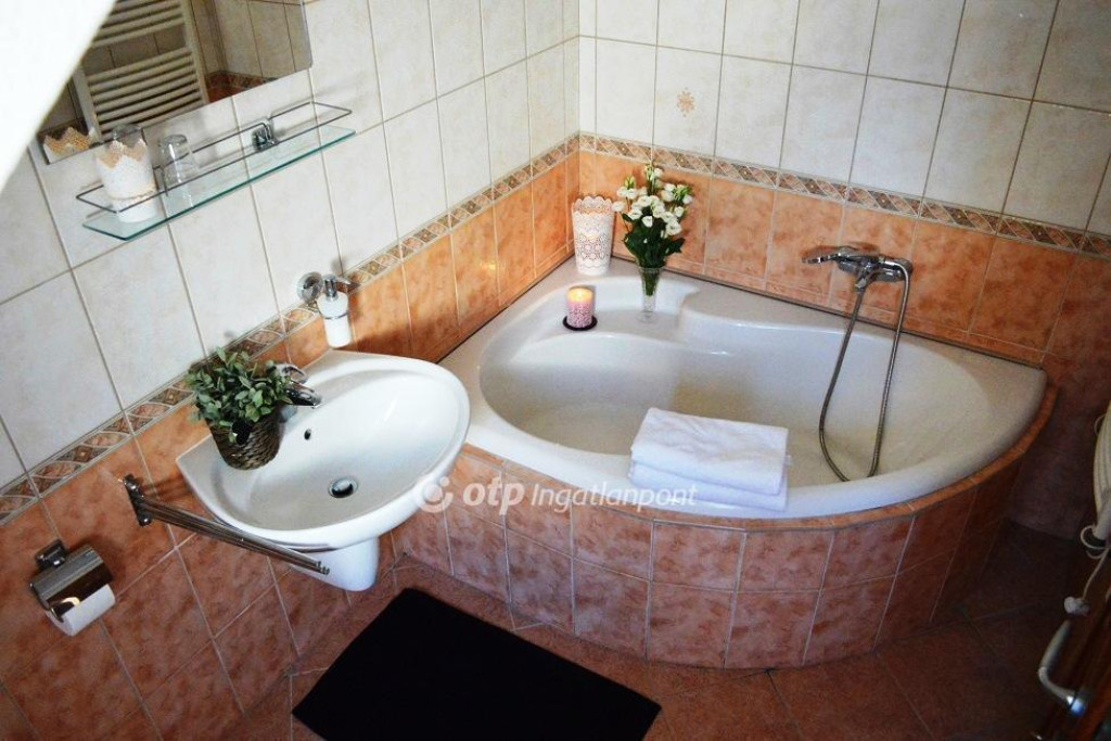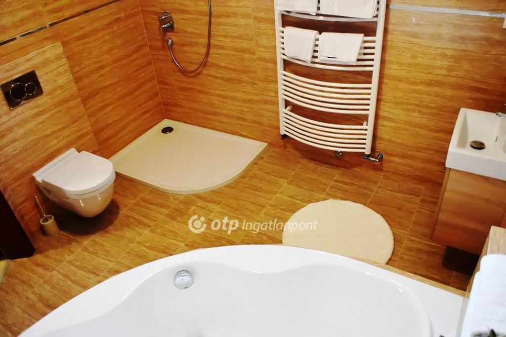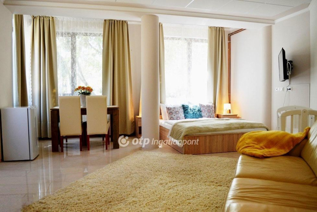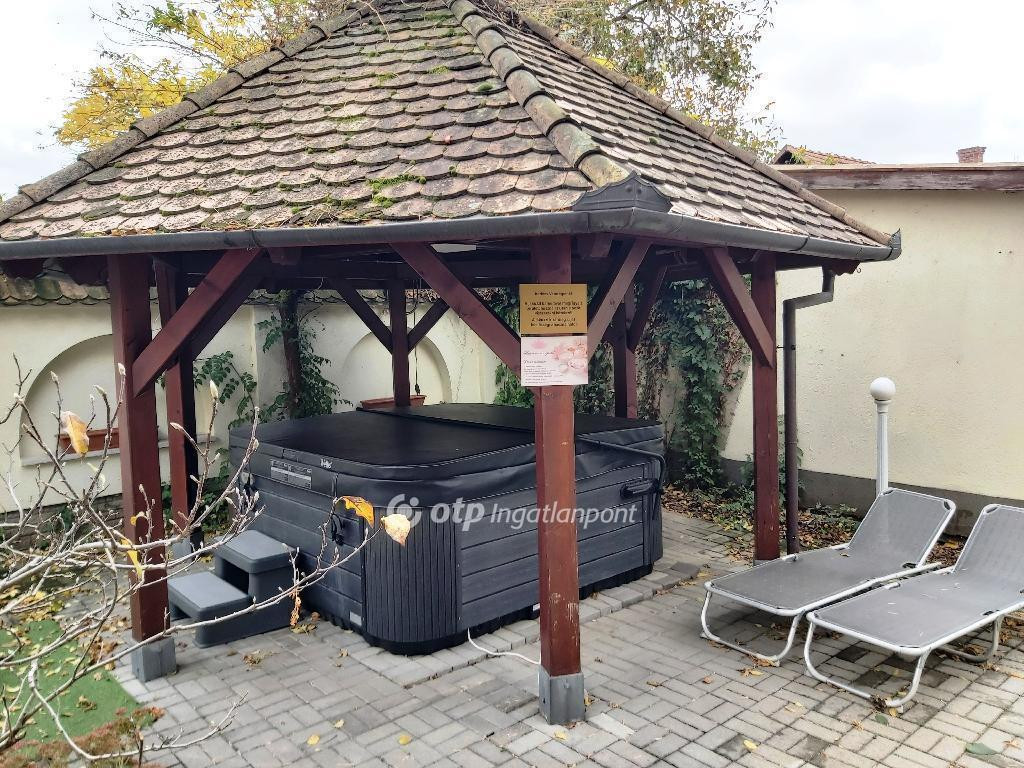 GYULÁN APARTMAN HÁZ ELADÓ. A tégla falazatú, két szintes, 260 nm-es ingatlan a várfürdőhöz és a középkorban épült egyetlen épen maradt tégla várhoz közel, 520 nm-es telken helyezkedik el. Az alsó szinten, ami családi háznak épült, amerikai konyhás nappali, egy hálószoba, két félszoba, fürdőszoba, wc, előszoba, valamint dupla garázs található, amit most a vendégek gyerekei játszó szobaként használnak. Az emeleten található további 5 apartman szoba, mindegyikhez saját előtér és fürdőszoba tartozik, valamint egy közös használatú teakonyha áll a vendégek rendelkezésére. Az otthon melegét gáz cirkó fűtés biztosítja radiátorokon keresztül, a nyári kellemes hőmérsékletről légkondicionáló berendezések gondoskodnak. A szobák laminált parkettával burkoltak, minőségi bútorokkal vannak berendezve. Az épülethez tartozik még egy külön álló rész, ami szauna használatára szolgál tusolóval, wc-vel. Az udvar teljes egészében viacolor térkővel van burkolva. A bejáratott apartman most is üzemel, a bérlője hosszú távra tervez, ezért kitűnő befektetési lehetőség. Az ár az apartman teljes berendezését tartalmazza. Ügyfeleinknek jogi és ingyenes pénzügyi szolgáltatást nyújtunk.