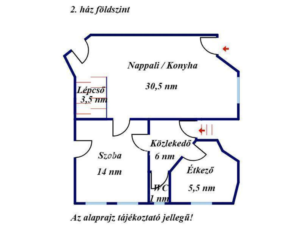 A 2. lakrész 2 db utcáról nyíló bejárati ajtóval rendelkezik.
