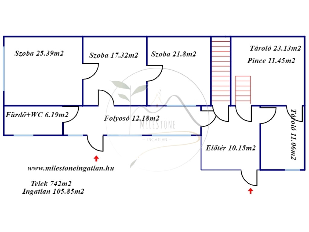 A telek mérete (körbekerített): 742m2, a ház alapterülete 93m2 amelyhez tartozik: pince 11.5m2, nyárikonyha 11.06m2, kamra + tároló 23.13m2, közlekedő és tárolásra alkalmas helyiség 10.15m2 továbbá az udvaron garázs, állattartásra alkalmas helyiségek is megtalálhatóak.