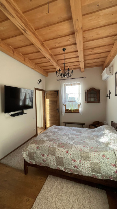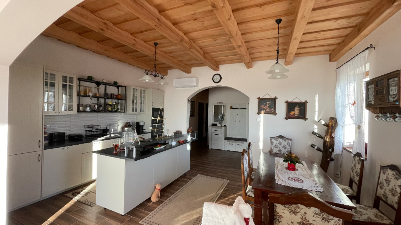 - fagerendás mennyezete és tornácos bejárata a környék stílusát tükrözi,