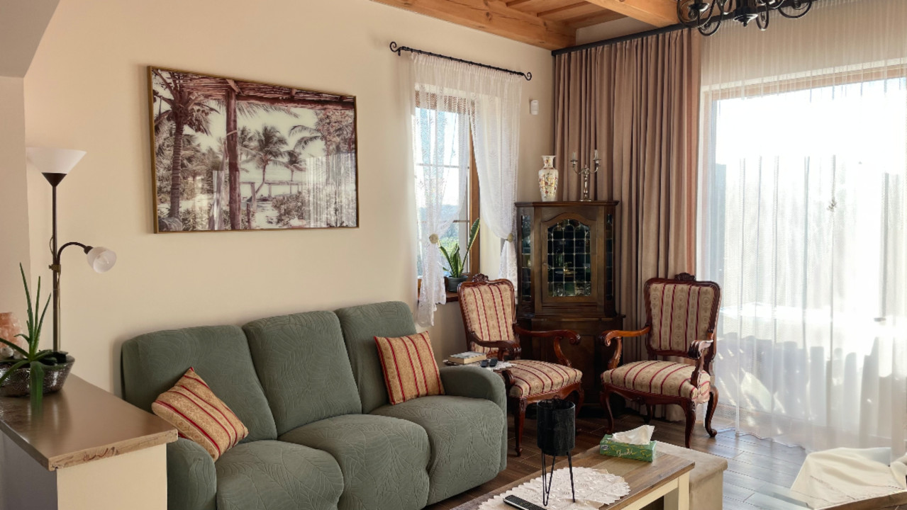 Jelenleg: 1 szinten, 2 fürdőszoba, 3 hálószoba és 1 amerikai konyhás nappali, kamra és hatalmas terasz áll rendelkezésre.