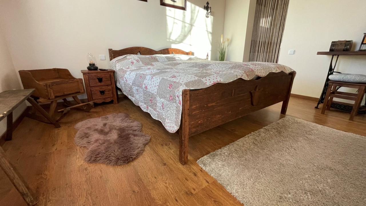 Különlegessége, hogy az egyik hálószobája tágas, átjárható gardróbszobával kapcsolódik a fürdőszobához.