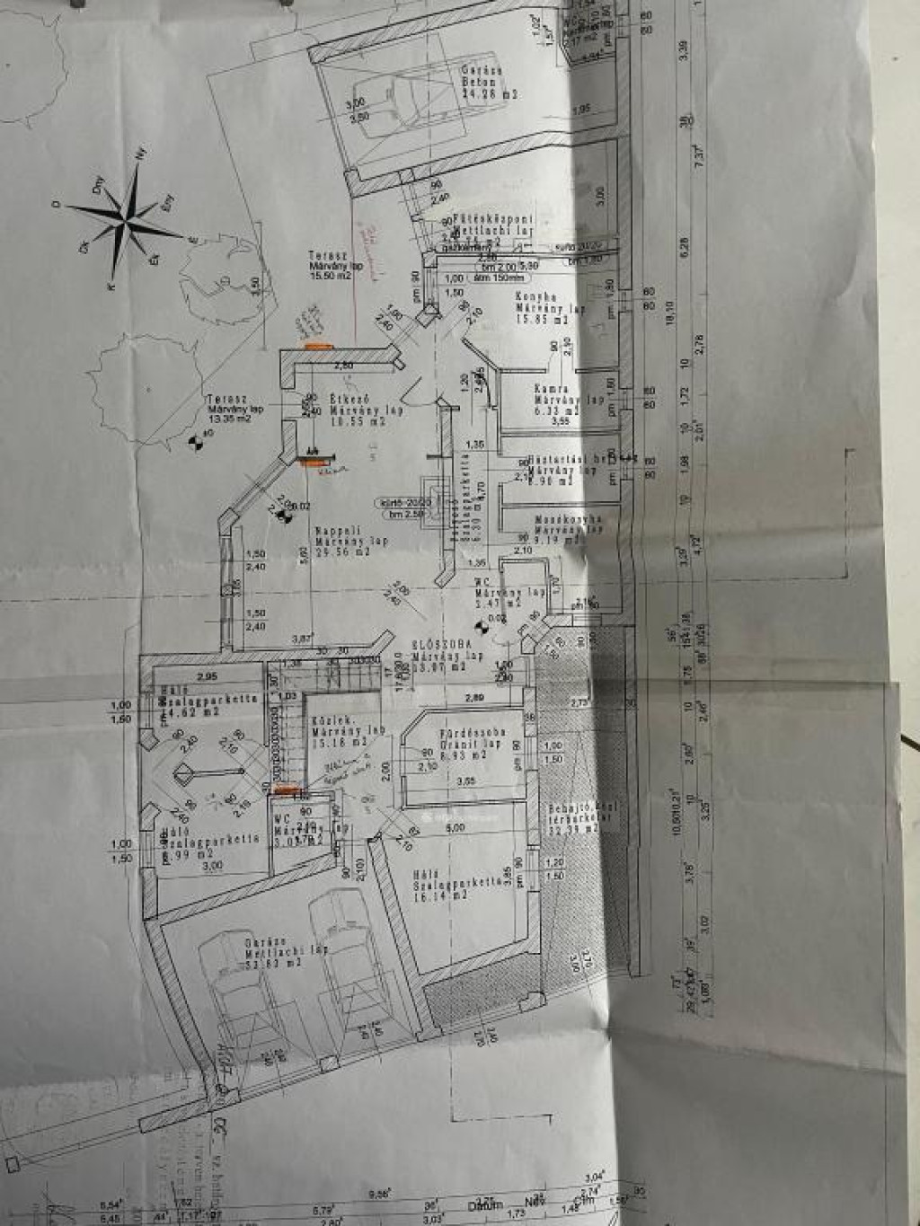 A parkolás háromállásos garázsban, illetve további udvari beállóhelyeken megoldott.