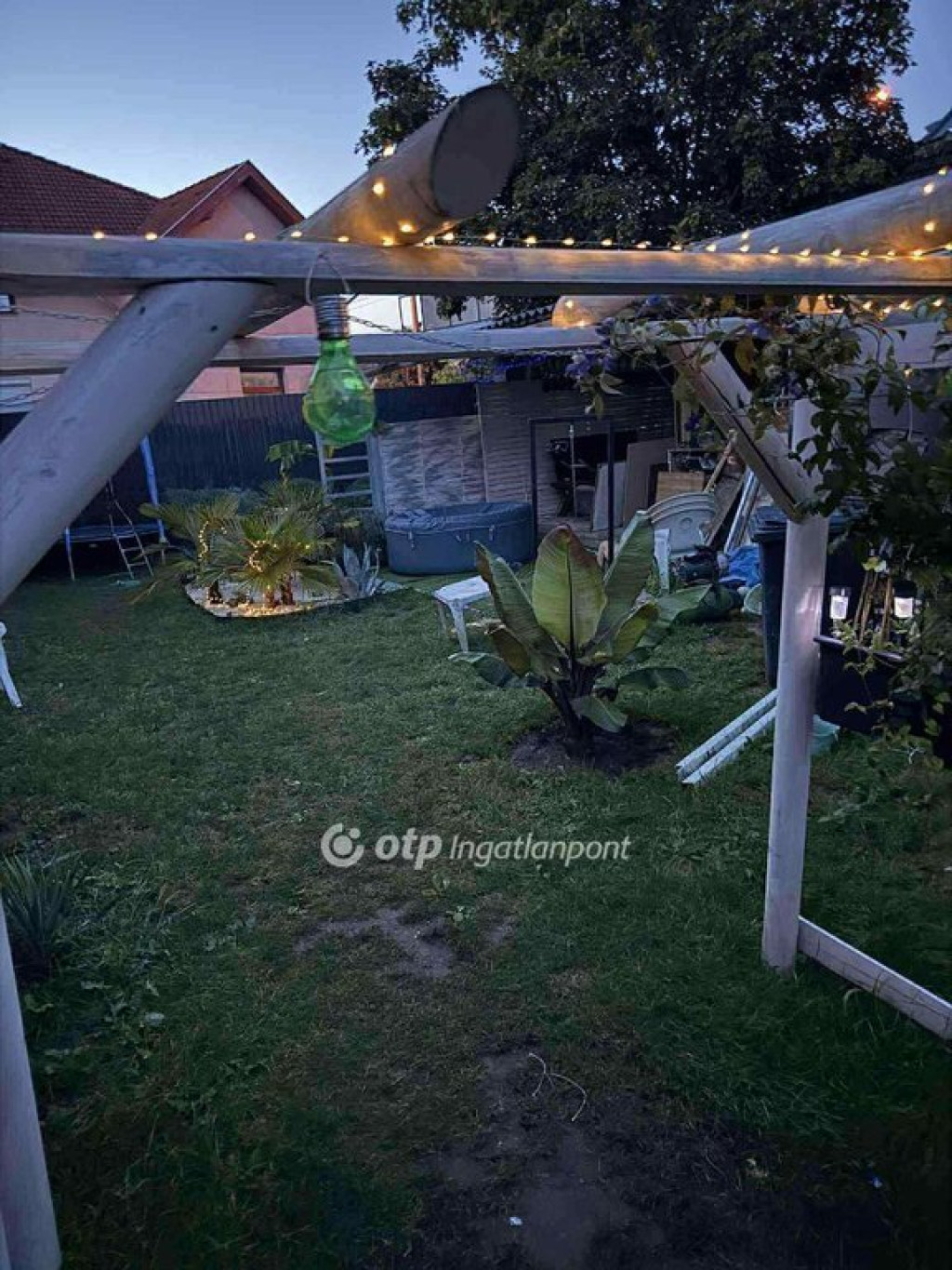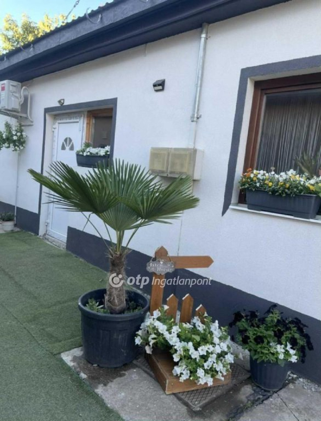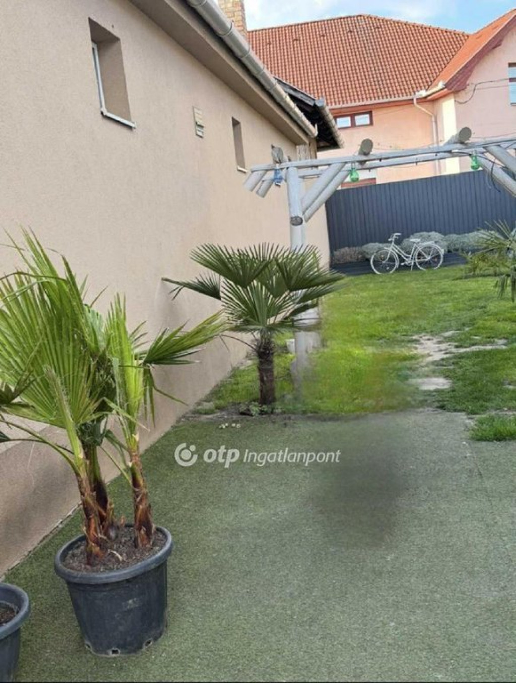 262 m2 es gondozott, részben műfűves telken, külön álló fedett terasz.
