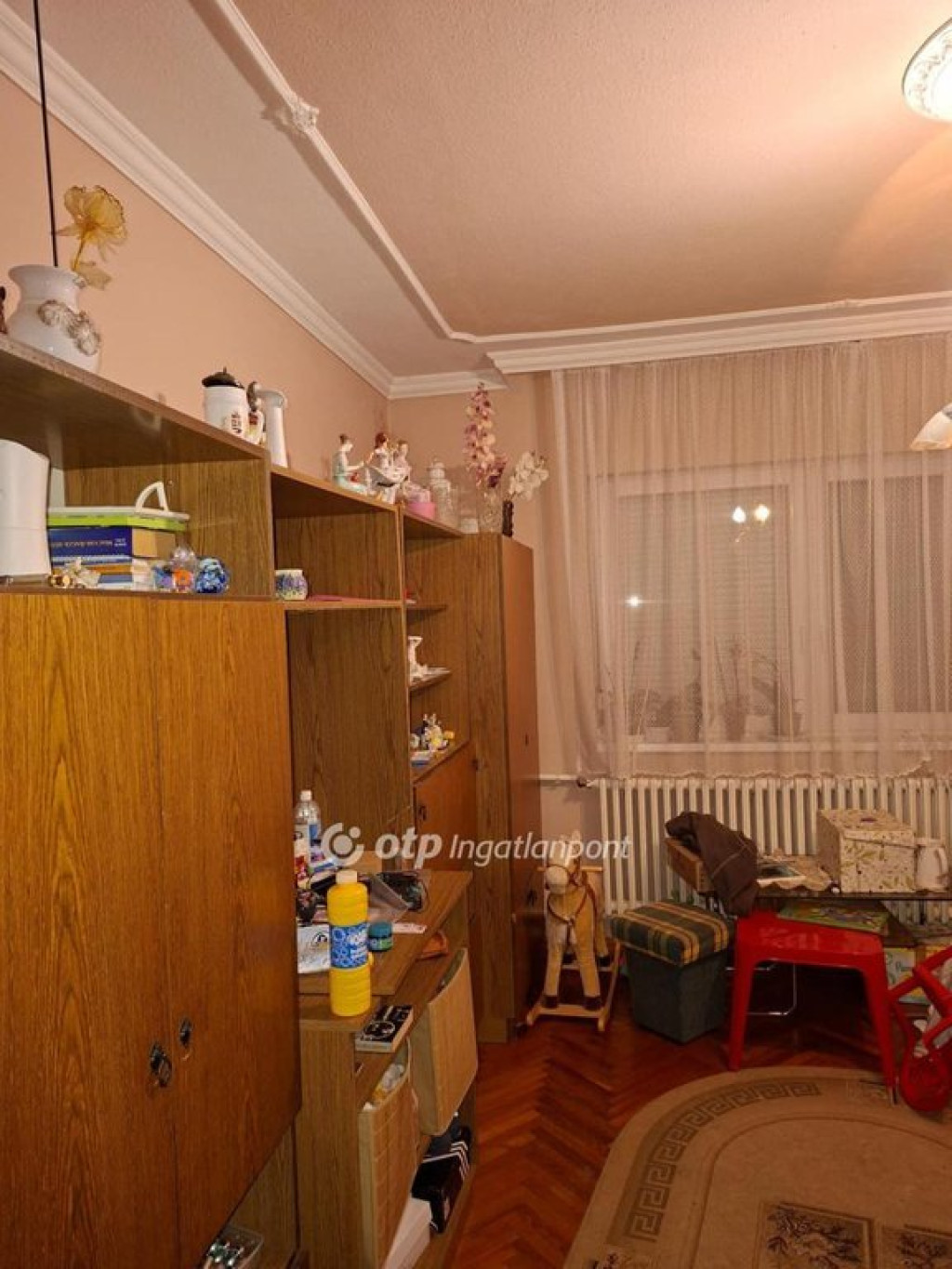 előkerttel egy 82 m2,- es, 1986-os építésű B38-as tégla falazattal épült 2+1 szobás ingatlan fél szoba 9 m2.