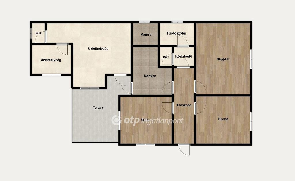 Szobák száma: 2 szoba + nappali (+üzlethelységben 1 szoba + 1 félszoba)