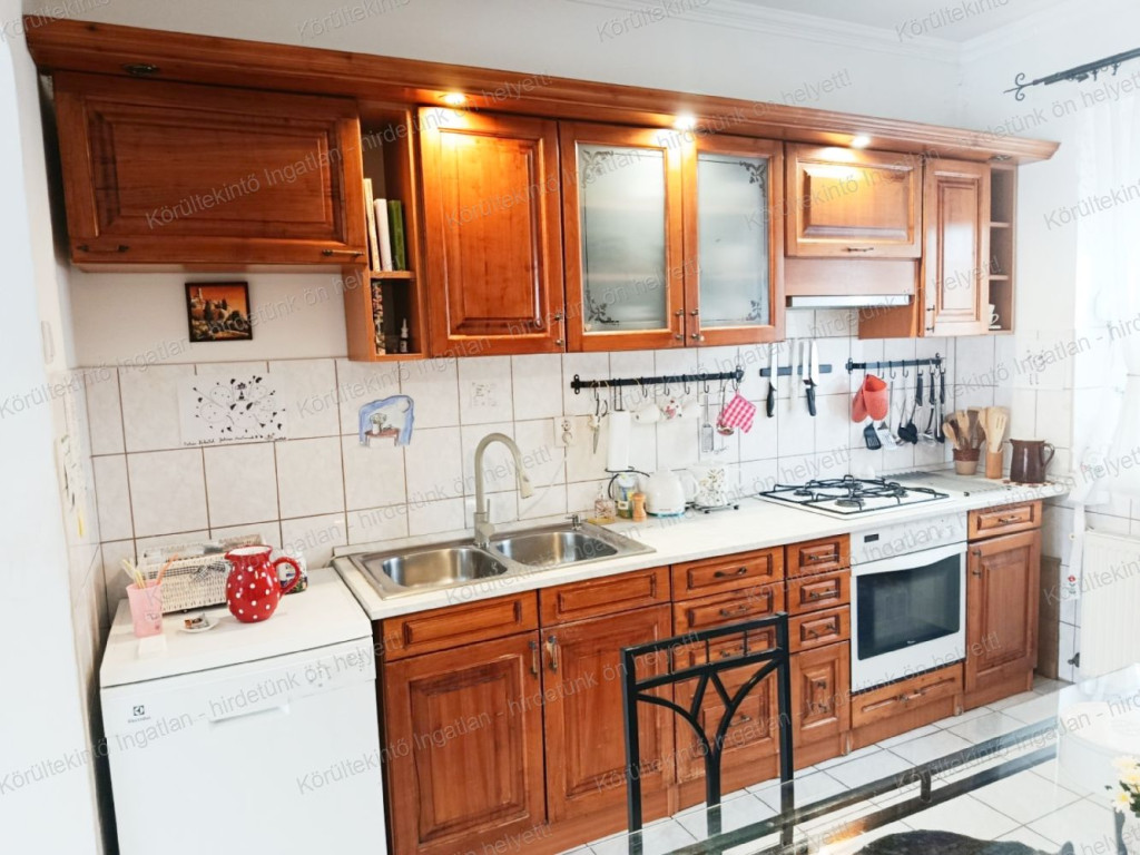 - amerikai konyha rusztikus tégla polccal (mediterrán), az árban a teljes beépített konyhabútor és a beépített eszközök, jár hozzá egy gránit mosogató, ami beépítést igényel. csempe burkolólap.