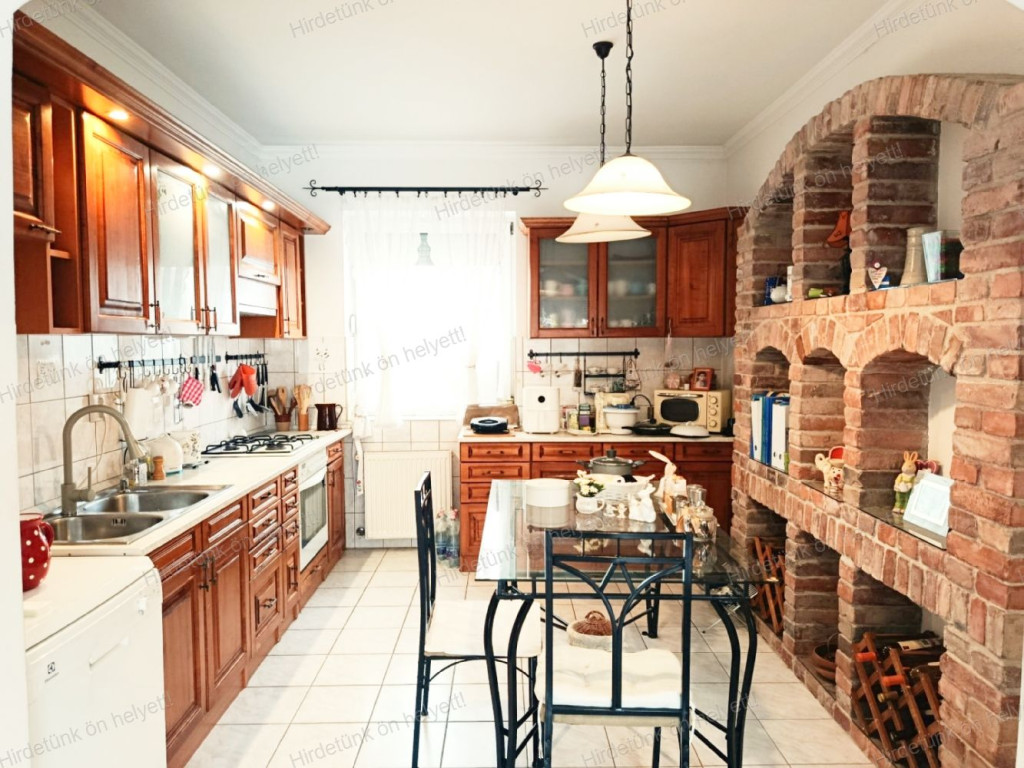- amerikai konyha rusztikus tégla polccal (mediterrán), az árban a teljes beépített konyhabútor és a beépített eszközök, jár hozzá egy gránit mosogató, ami beépítést igényel. csempe burkolólap.
