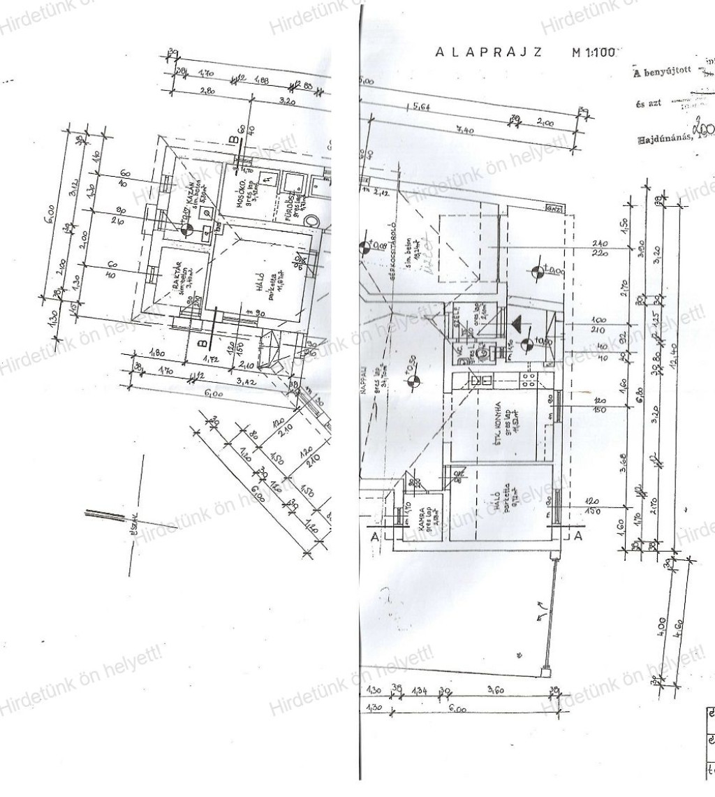 Az épületek összes alapterülete 150+30 nm, melyből: