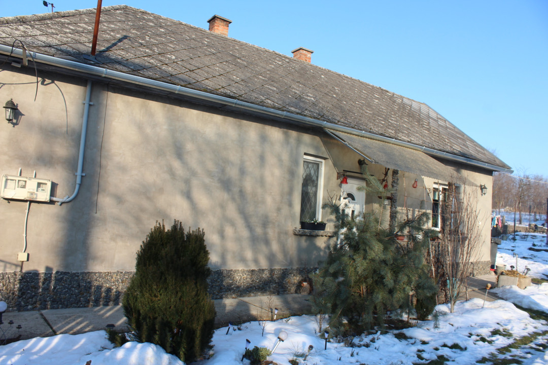 Terméskő alapon, vályogból és téglából épült, 15 cm födémszigetelés, fa tetőszerkezet, pala fedéssel.