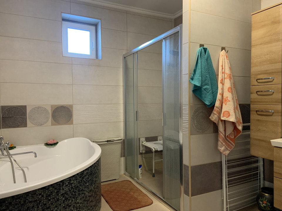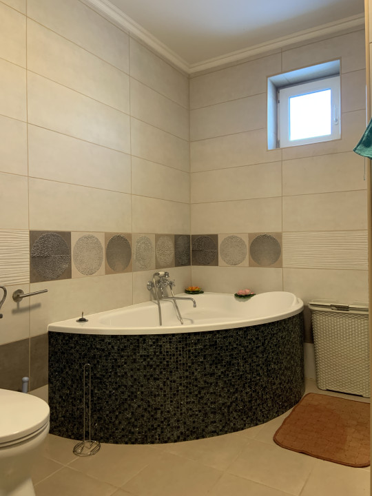 -Fürdőszoba sarokkáddal, zuhannyal és WC-vel