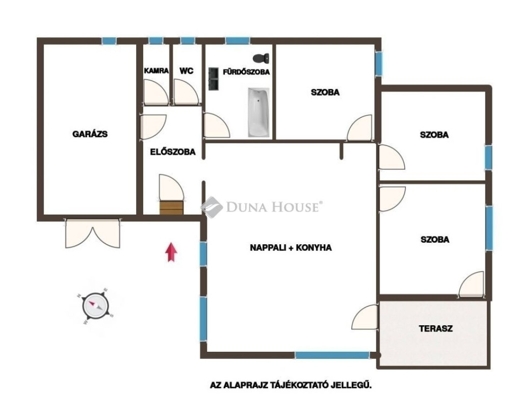 - 3 nagy méretű, jól berendezhető hálószoba + amerikai konyhás nappali