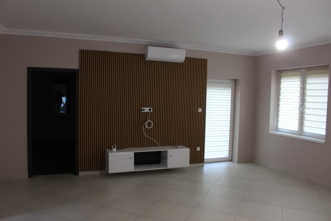 Helyiségei : előszoba + zuhanyzós, wc-s gépészeti helyiség + 40 m2-s konyha, étkező, nappali + közlekedő + 3 hálószoba + kádas fürdőszoba, wc-vel + kb 20 m2 terasz.