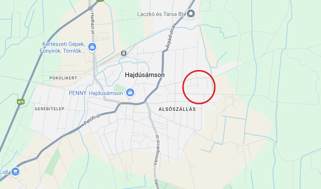 Hajdúsámsonban, kertvárosi környezetben, aszfaltozott utcában, földszintes, 75 m2-es, nappali+ 2 szobás, önálló családi ház eladó, 400 m2-es, összközműves telken!