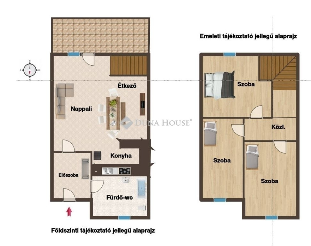 - Emeleten padlószőnyeges hálószobák