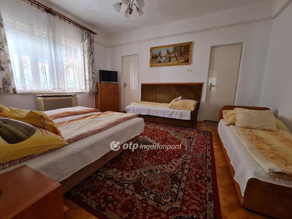 Hajdúszoboszló, kiemelt fürdőövezetében eladó egy szép állapotú családi ház. A 494m2 nagyságú telken 2db különálló ingatlan található. A nagyobbik 99m2 alapterületű, a kisebbik pedig 46m2. Mindkettő beton alapra épült, vályog falazattal, cserép tetőhéjazattal. Az otthon melegéről gázkonvektorok gondoskodnak, nyílászáróik fa szerkezetűek. 2005-ben új elektromos hálózat, új vízvezetékek és új hidegburkolatok kerültek mindkét ingatlanba. Folyamatosan karbantartott, szép állapotban van mindkettő. Kivételes lokációjának köszönhetően apartmanként funkcionált, de tökéletesen alkalmas családi háznak vagy két generáció összeköltözésére is. 1/1 tulajdonú, tehermentes, azonnal birtokba vehető. Az ár tartalmazza a teljes bútorzatot.