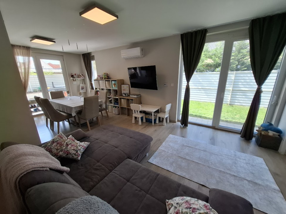 Hajdúszoboszlón Bánomkertben nyugodt csendes utcában, fürdőhöz közel eladó egy 2023-ban épült, kiváló szerkezetű igényes családi ikerház, kis kerttel.A ház Porotherm 30- as téglából épült 15 cm szigeteléssel.A fűtést Immergas gázkazán biztosítja,padló és radiátoros fűtéssel.2 fürdőszoba került kialakításra 1 fürdőkádas,sarokkáddal, illetve egy zuhanyfülkés is.A nagy nappali és konyha egyben van kialakítva, tágas nagy térrel, 20 nm nagy terasszal,gyönyörű fehér konyhabútorral.A konyhabútor a vételár részét képezi, beépített gépekkel/sütő,főzőlap,páraelszívó,mosogatógép/.A nappaliban felszerelésre került egy hűtő-fűtő klíma is.Műanyag nyílászárók kerültek beépítésre 3 rétegben.A házban a felső szinten 2 erkély tartozik a szobákhoz.A lépcső alatt beépített szekrény kapott helyet,fehér színben..A szobák külön nyílnak és laminált parkettával fedettek.Kandalló kialakítására van lehetőség a kiépítés megtörtént.Nagyon jó elrendezésű, tágas világos családi ház, kis kerttel csak ajánlani tudjuk.Bármikor megtekinthető időpont egyeztetéssel.További ingatlanjaink a Teleingatlan oldalán több nyelven is hitel ügyintézéssel és ügyvédi segítségnyújtással egybekötve, illetve irodai kivetítőnkön is megtekinthető.
