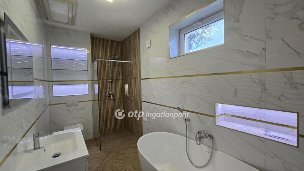 -az otthon melegét modern gázkazán szolgáltatja minden helyiségben padlófűtés lett kialakítva , illetve az amerikai konyhás nappaliban inverteres klíma lett telepítve