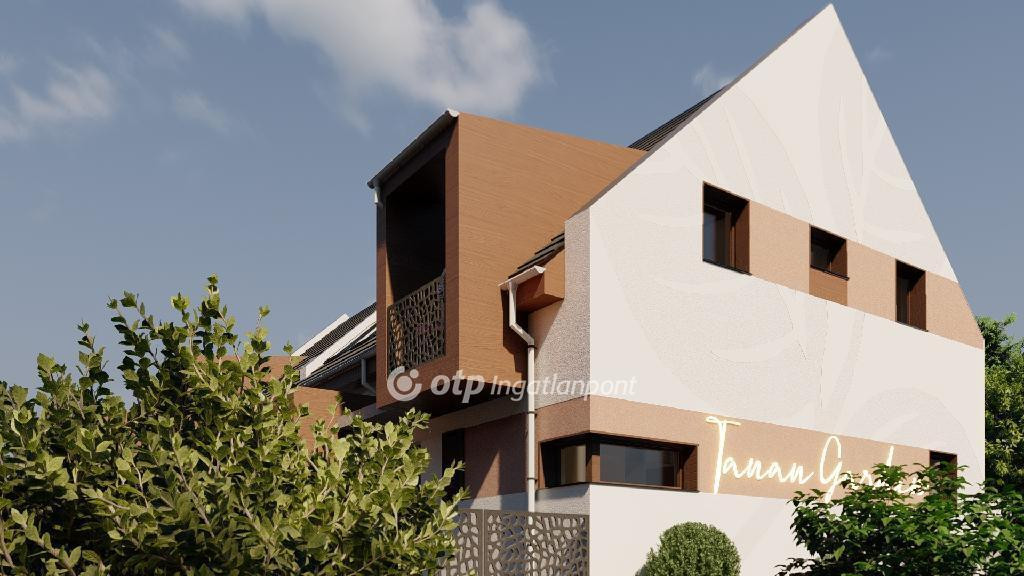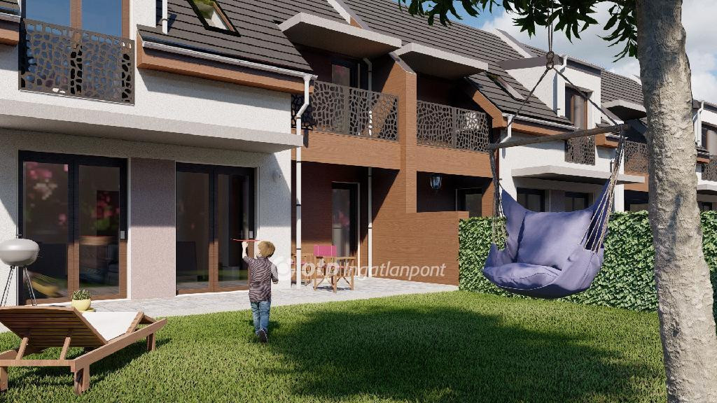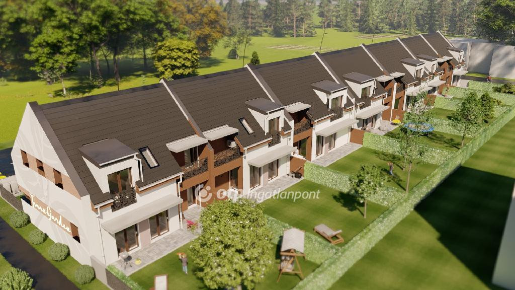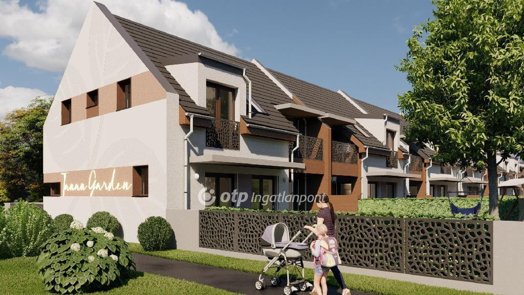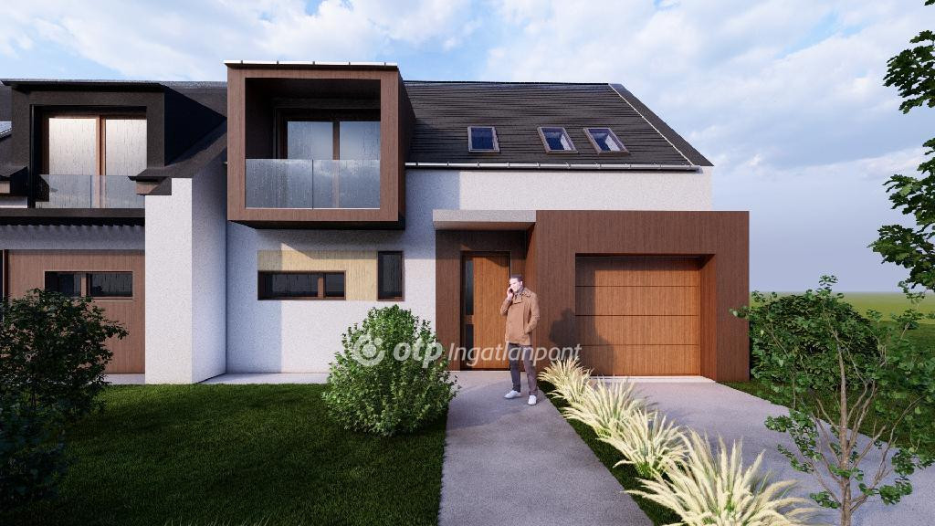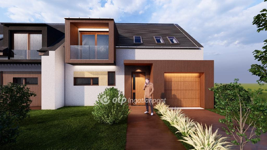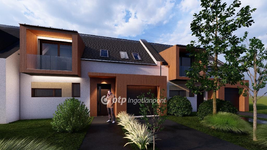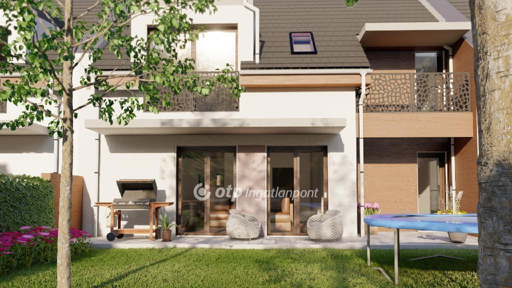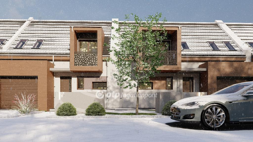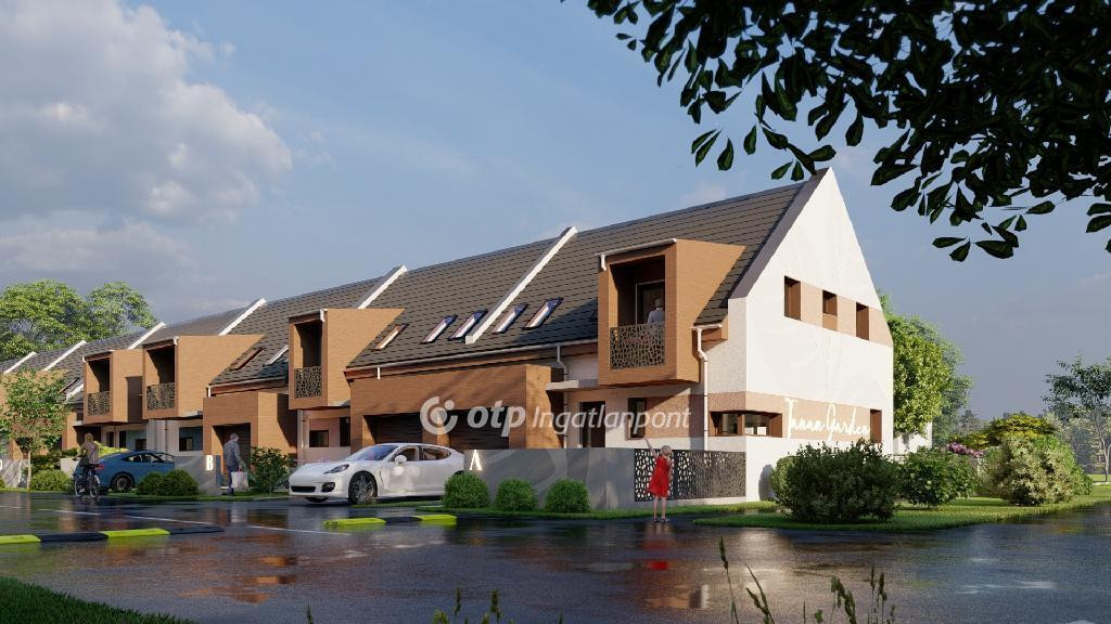 ELADÓ Igényes új építésű 7 db családi házból álló saját kerttel is rendelkező sorház, amely kényelmes és tágas otthona lehet családoknak. A hirdetett G ház mérete 123 nm. A földszint alapterülete 67 nm, az emelet mérete 56 nm. A földszinten mosdó, konyha, étkező, nappali, közlekedő, garázs és terasz található, valamint egy 78 nm-es saját kertrész is tartozik hozzá. Az emeleten 1 szoba, 2 félszoba, közlekedő, fürdő, gardrób, wc, terasz és loggia kerül kialakításra.