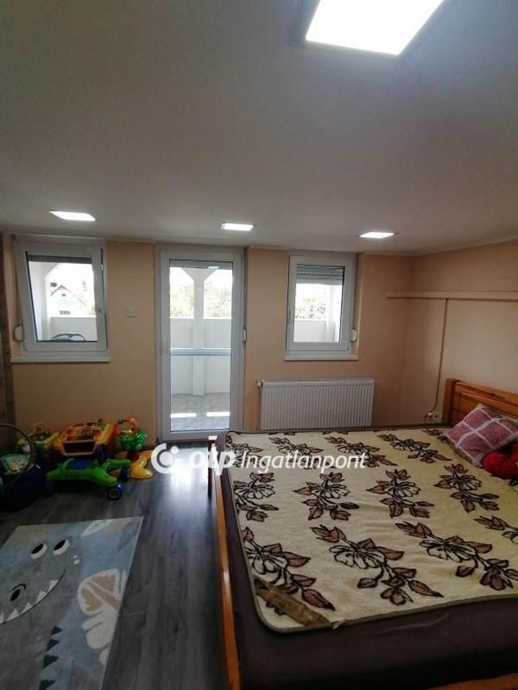 Helyiségek: földszint: előszoba, amerikai konyhás nappali, 2 szoba, fürdőszoba, külön WC, 73 m2 terasz; tetőtér: 2 db erkély, 3 szoba, konyha étkező egyben, folyosó, fürdőszoba, külön WC.