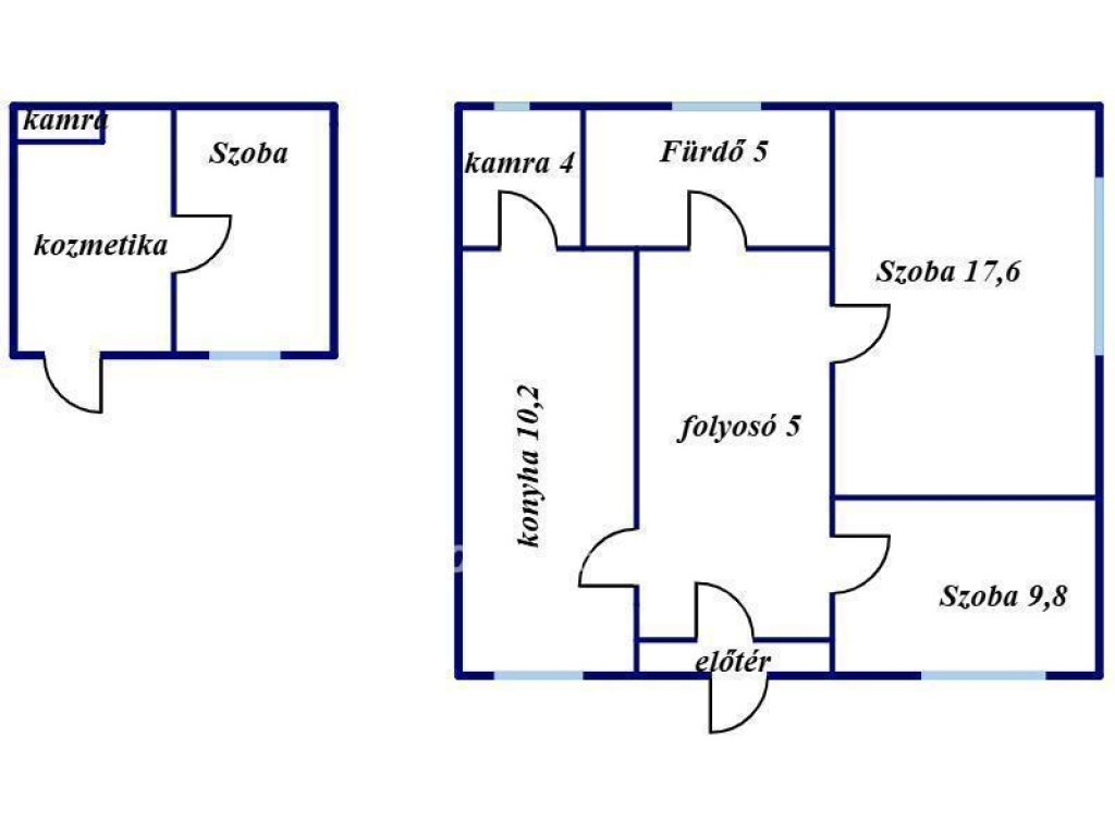 - Helyiségek: 3 (jelenleg: kozmetikai helyiség, kamra, szoba)