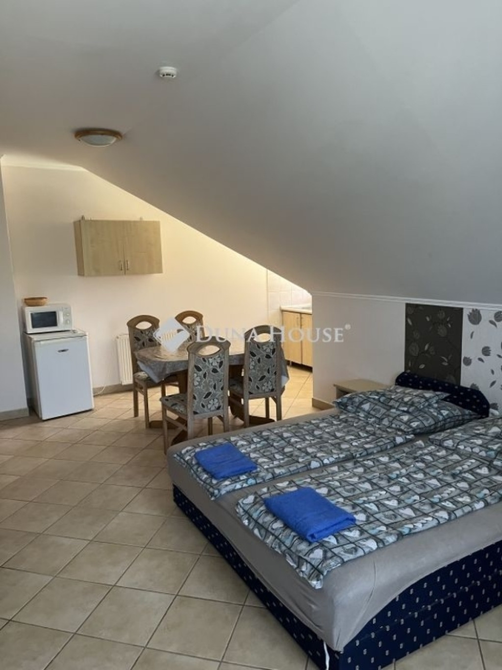 Ez a csendes utcában található tágas, kétszintes ingatlan folyamatosan fogadja új és visszajáró vendégeit. Kiváló választás annak, aki szeretné ezt tovább folytatni. De ha lakhatásra vásárolná meg, tökéletes, hiszen két vagy akár több generáció együttélésére is alkalmas. Szintes kialakításának köszönhetően külön bejárattal rendelkezik a földszint és az emelet is.