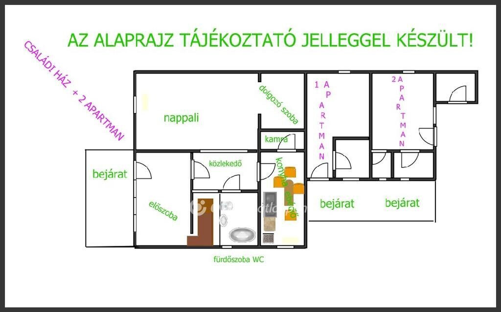 A telken még megtalálható 2 apartman egy mai napig lakható állapotú, két szobás 22 m2,