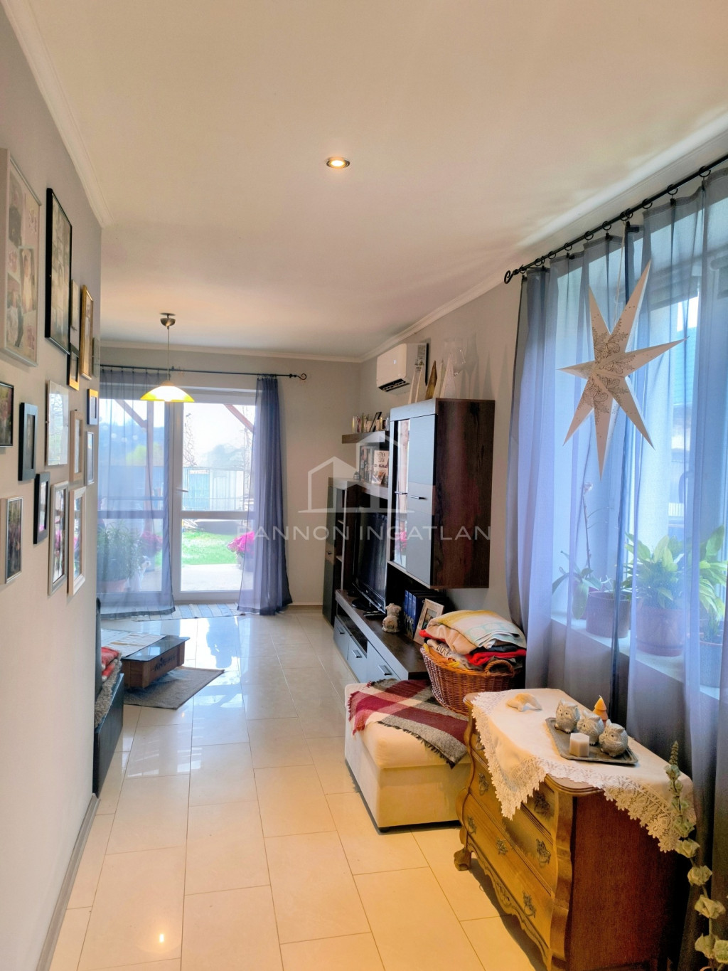 Kert: Az ingatlanhoz egy rendezett, lekerített kertrész tartozik, mely egy osztatlan közös tulajdonú telek része.