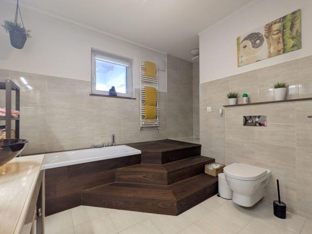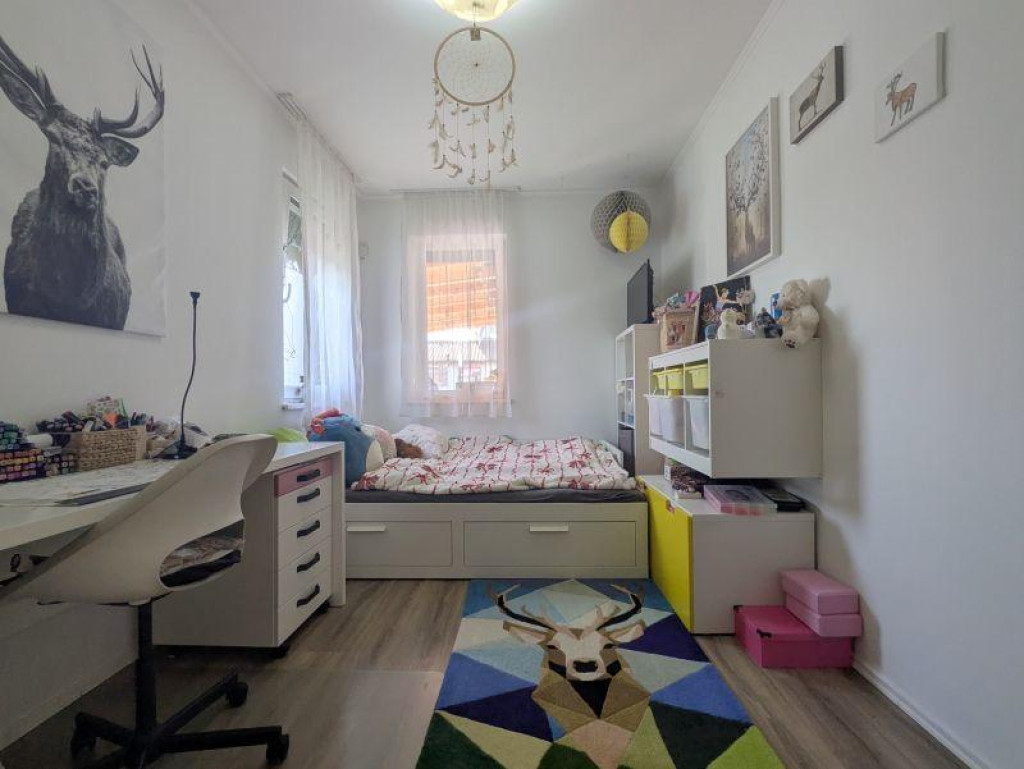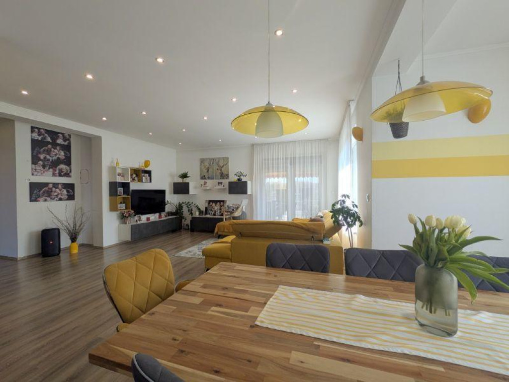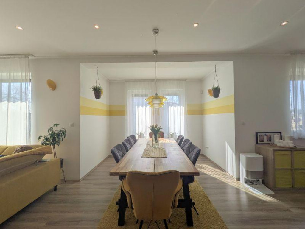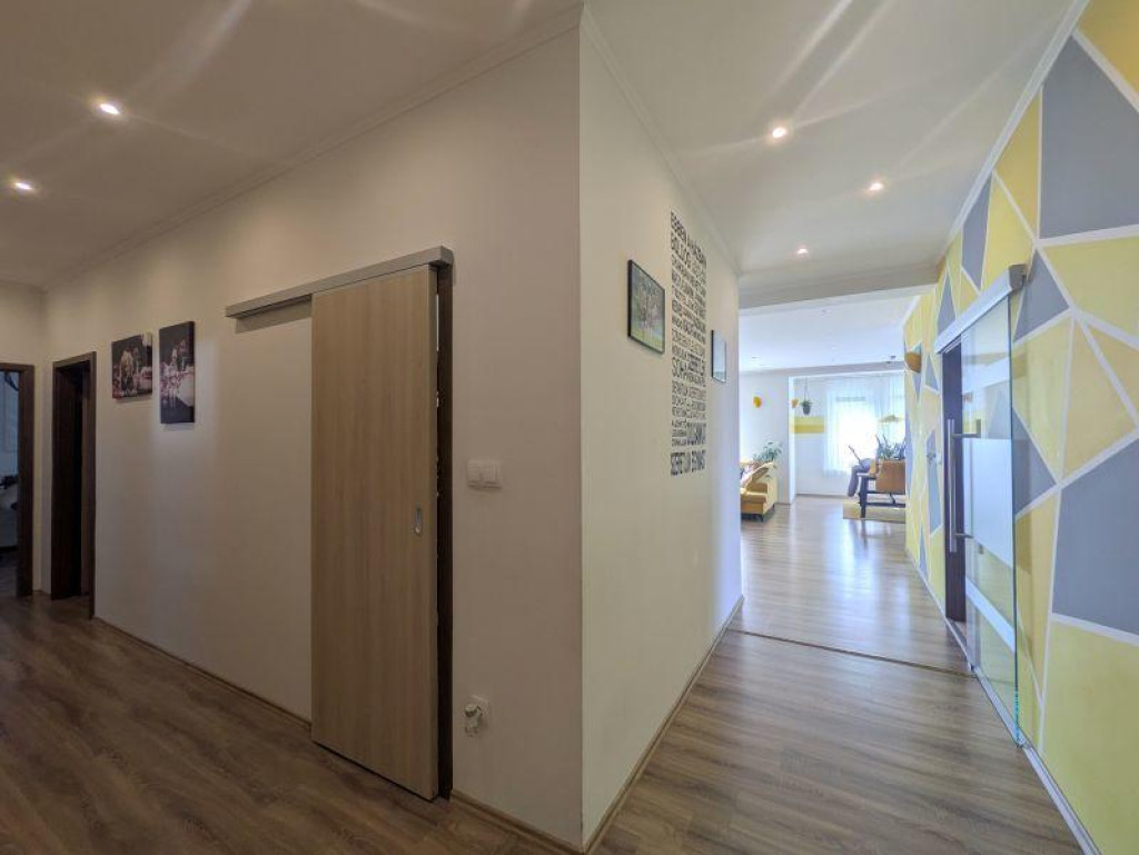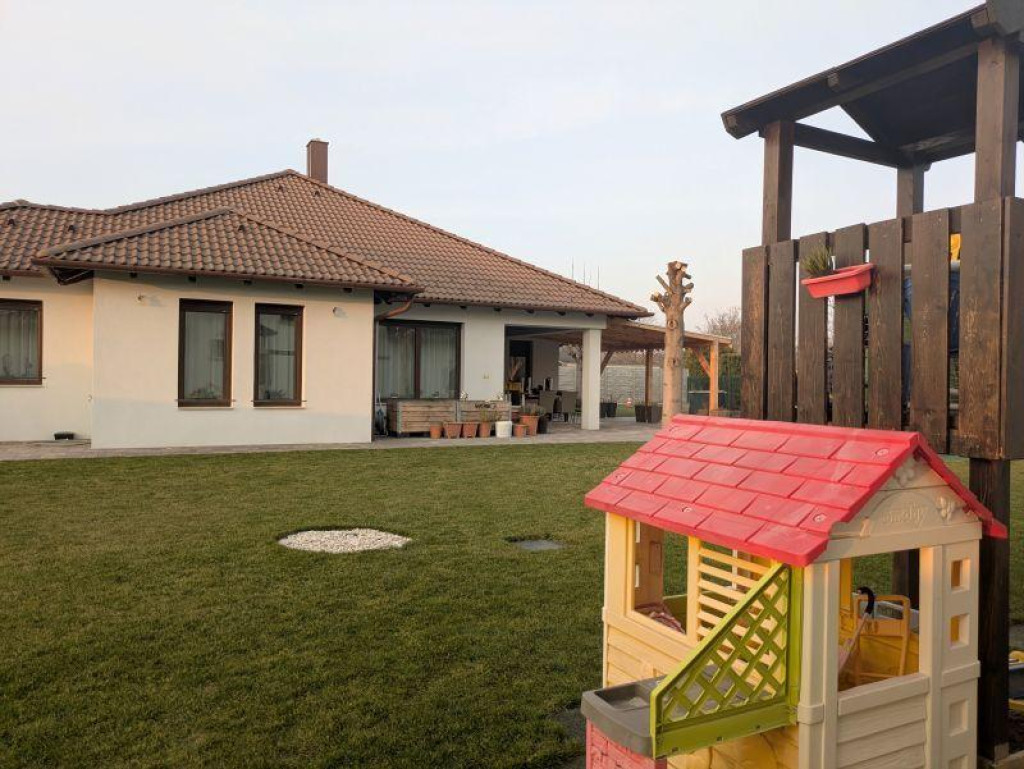 A 989 nm-es telken elhelyezkedő, 185 nm hasznos alapterületű ingatlan minden igényt kielégít. A 4 külön nyíló szoba, a tágas nappali és az amerikai konyha tágas és kényelmes életteret biztosít a családnak. A modern konyhasziget és a beépített gépek a sütés-főzés szerelmeseit kápráztatják el.