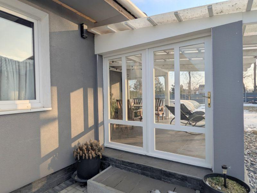 Amiért imádni fogja: A nappaliból közvetlen kijárás nyílik a 25 m²-es, részben fedett teraszra, ahonnan a kertbe érkezünk. Itt kapott helyet a fedett medence, ami a nyári napok fénypontja lesz! A kert gondozott, a környék pedig biztonságos és barátságos.