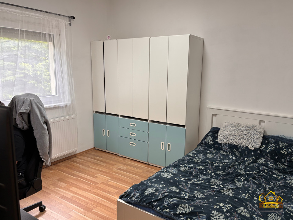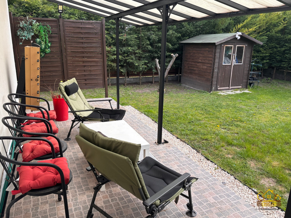 A praktikus elosztású ingatlanban van 3 hálószoba, egy amerikai konyhás nappali beépített konyhabútorral, gépekkel, egy fürdőszoba, egy külön WC helyiség és egy előszoba. A nappaliból a fedett teraszra jutunk ki, ahol a szomszédoktól egy teljesen elszeparált kert található.