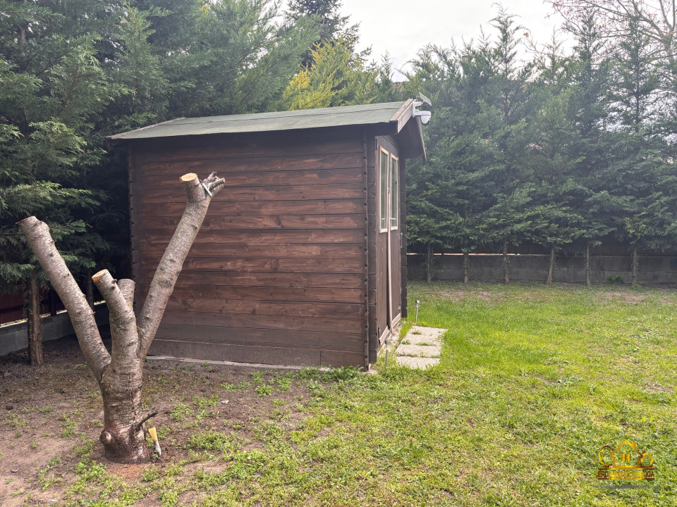 A parkosított telek területe 473 m², a kertben helyett kapott 2 kerti tároló is.