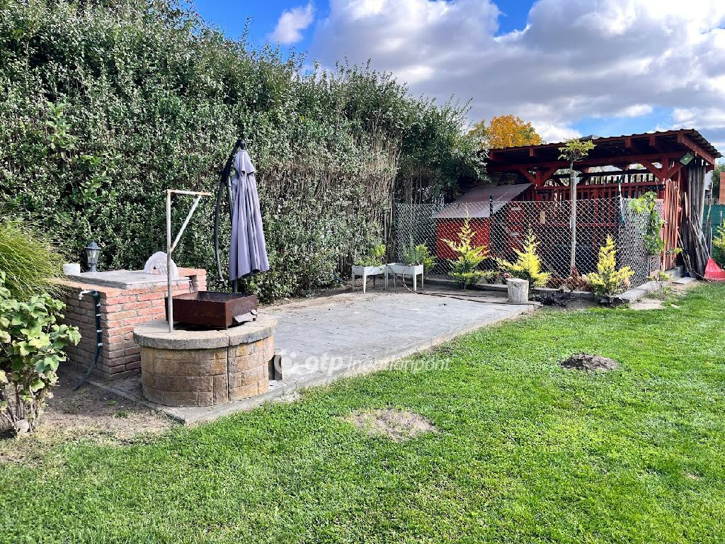 Az ingatlan 840 nm-es telken helyezkedik el, mely parkosított előkertből és a ház mögötti, pihenésre ideális, baráti összejövetelekre alkalmas területből áll.