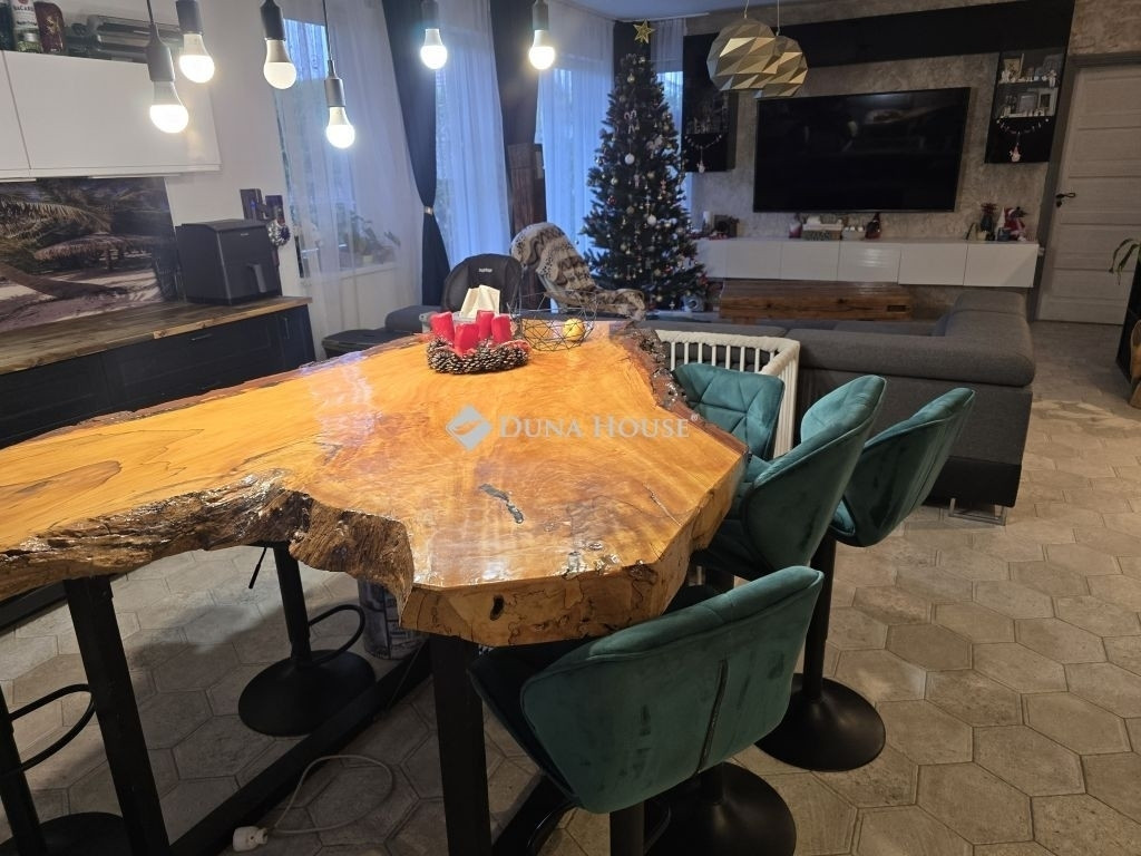 Halászteleken lévő ingatlan kínálok megvételre, amely 804nm-es összközműves telekre épült 2019-ben. A 94 nm-es ingatlan téglából épült, 15 cm-es külső -és födém szigeteléssel, betoncserép fedéssel. Bejárati terasz 2.88nm a nyitott terasz 12nnm-es.Kialakításra került benne egy- nagy nappali,- konyha étkezővel,- közlekedő,- gardrób,- beépített zuhanyzóval ellátott fürdőszoba wc-vel ellátva,- és három hálószoba, melyből az egyik intim fürdőszobával rendelkezik.Fűtéséről kondenzációs gázkazán gondoskodik a hideg burkolatok alatt padló fűtéssel, és hűtő-fűtő klíma. Nyílászárói korszerű három rétegű műanyag ablakok és ajtók. A családi ház társasházi alapító okirattal rendelkezik, így lakásnak minősül, közös fala csak a cirkóhelyiség fala.. A telek teljes mértékben leválasztásra került, ahol egy 2.86nm-es tároló áll rendelkezésre, illetve egy medence amelynek mérete 6mx275cm. Az ingatlan új építésű ingatlanok között található csendes utcában, autóval iskolától, óvodától, bölcsődétől 5 percre.A vételár részét képezheti a képeken látható bútorok, hogyha a leendő tulajdonos igényt tart rá, illetve a medence.Méreteinek és adottságainak köszönhetően az ingatlan leendő tulajdonosai akár a 3 gyermek után járó CSOK Plusz kamattámogatott hitelt is igénybe tudják venni, melynek mértéke elérheti az 50.000.000 Ft-ot.A hirdetésben szereplő FIX 3%-os lakáshitel részét képező támogatásokat Magyarország Kormánya nyújtja.Ha megtetszett Önnek ez az ingatlan, ne habozzon hívni a rugalmas megtekintés ügyében a hét bármely napján.