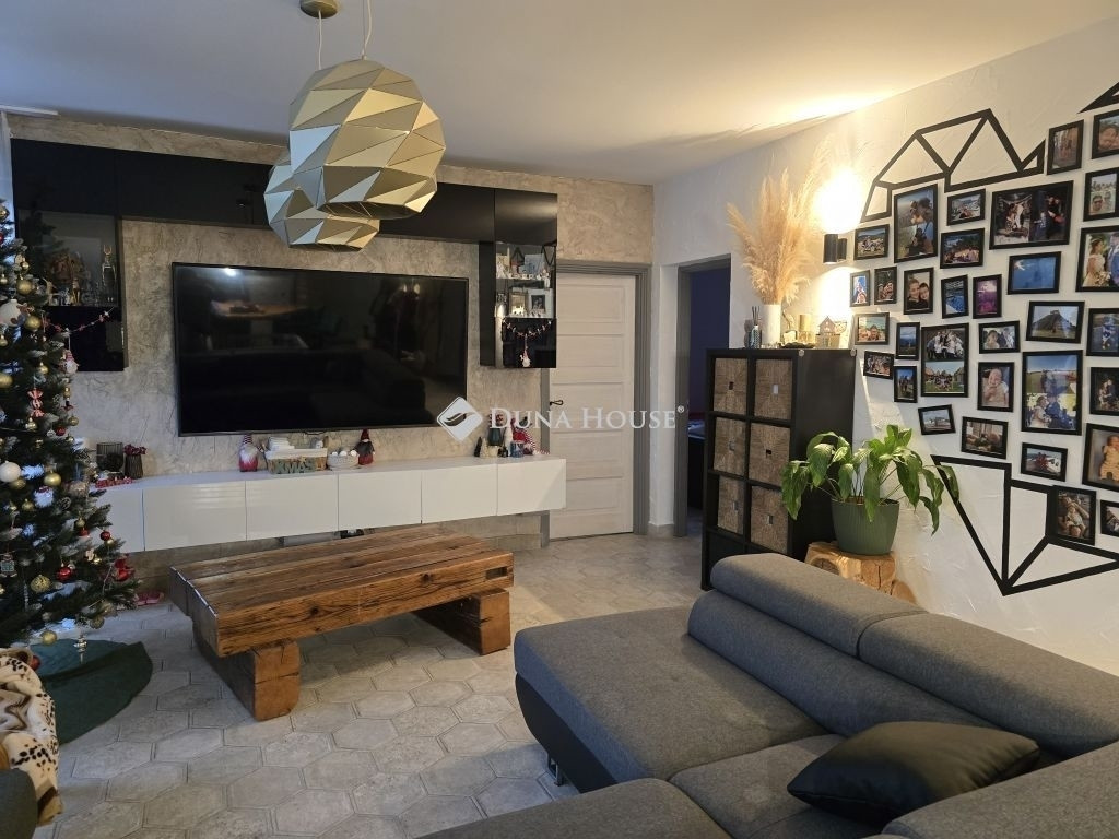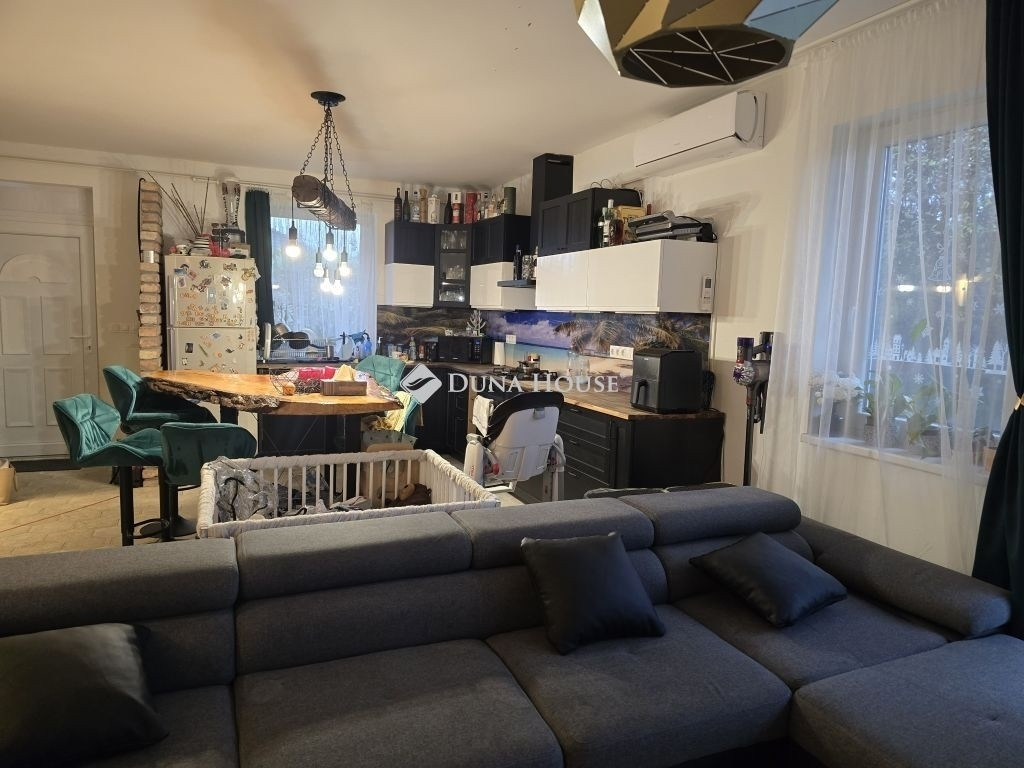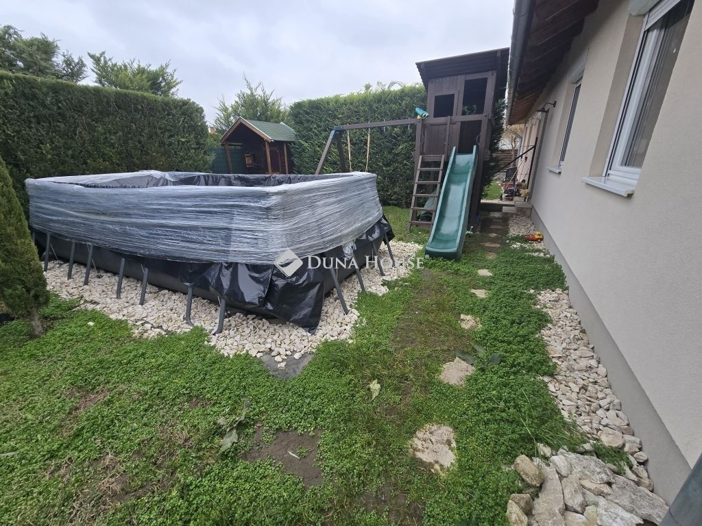 Halászteleken lévő ingatlan kínálok megvételre, amely 804nm-es összközműves telekre épült 2019-ben. A 94 nm-es ingatlan téglából épült, 15 cm-es külső -és födém szigeteléssel, betoncserép fedéssel. Bejárati terasz 2.88nm a nyitott terasz 12nnm-es.Kialakításra került benne egy- nagy nappali,- konyha étkezővel,- közlekedő,- gardrób,- beépített zuhanyzóval ellátott fürdőszoba wc-vel ellátva,- és három hálószoba, melyből az egyik intim fürdőszobával rendelkezik.Fűtéséről kondenzációs gázkazán gondoskodik a hideg burkolatok alatt padló fűtéssel, és hűtő-fűtő klíma. Nyílászárói korszerű három rétegű műanyag ablakok és ajtók. A családi ház társasházi alapító okirattal rendelkezik, így lakásnak minősül, közös fala csak a cirkóhelyiség fala.. A telek teljes mértékben leválasztásra került, ahol egy 2.86nm-es tároló áll rendelkezésre, illetve egy medence amelynek mérete 6mx275cm. Az ingatlan új építésű ingatlanok között található csendes utcában, autóval iskolától, óvodától, bölcsődétől 5 percre.A vételár részét képezheti a képeken látható bútorok, hogyha a leendő tulajdonos igényt tart rá, illetve a medence.Méreteinek és adottságainak köszönhetően az ingatlan leendő tulajdonosai akár a 3 gyermek után járó CSOK Plusz kamattámogatott hitelt is igénybe tudják venni, melynek mértéke elérheti az 50.000.000 Ft-ot.A hirdetésben szereplő FIX 3%-os lakáshitel részét képező támogatásokat Magyarország Kormánya nyújtja.Ha megtetszett Önnek ez az ingatlan, ne habozzon hívni a rugalmas megtekintés ügyében a hét bármely napján.