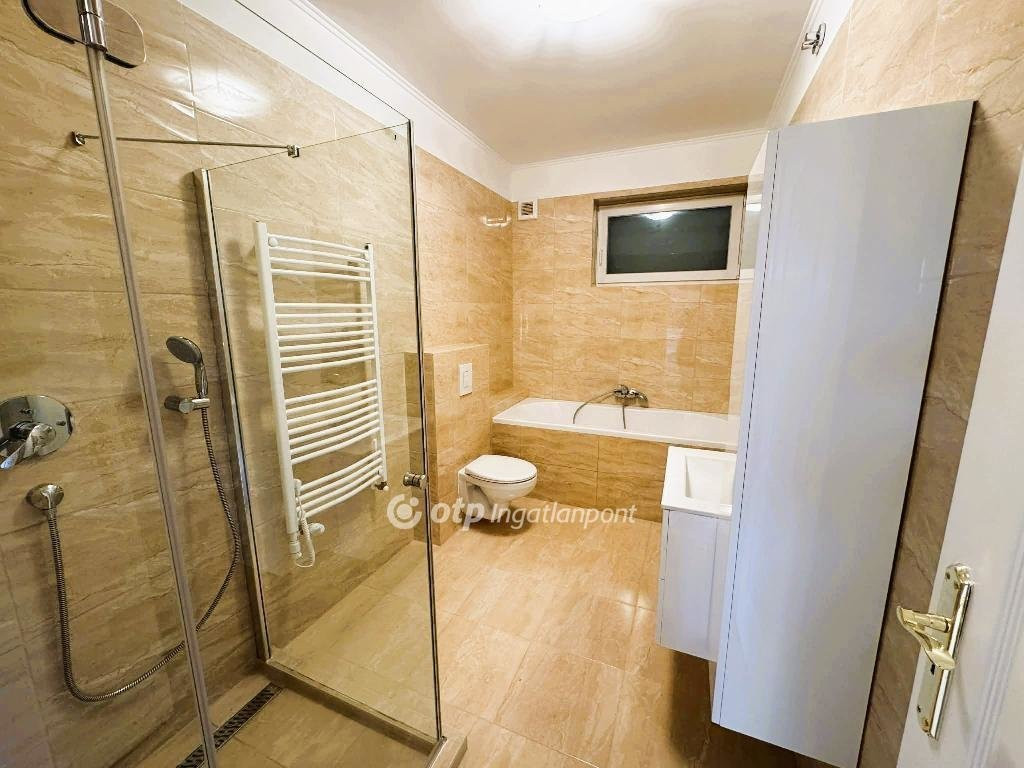 A belső elrendezés átgondolt és jól élhető: az előszobából nyílik a tágas, nagy üvegfelületekkel rendelkező amerikai konyhás nappali, amely közvetlen kapcsolatban áll a 23 nm-es terasszal és a kerttel. Az ingatlanban három külön nyíló hálószoba található, melyek közül az egyik saját fürdőszobával rendelkezik, továbbá egy második fürdőszoba és egy külön vendég WC is helyet kapott. Mindkét fürdőszoba teljes értékűen felszerelt, zuhanyzóval, káddal és WC-vel ellátott. Az előszobában beépített gardrób biztosít praktikus tárolási lehetőséget.