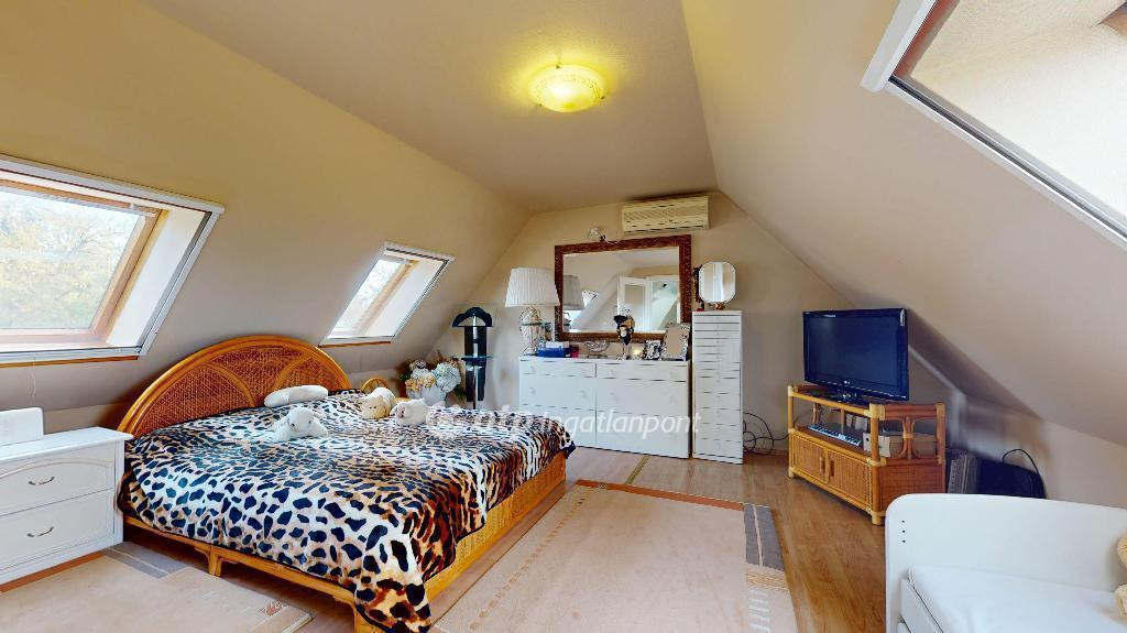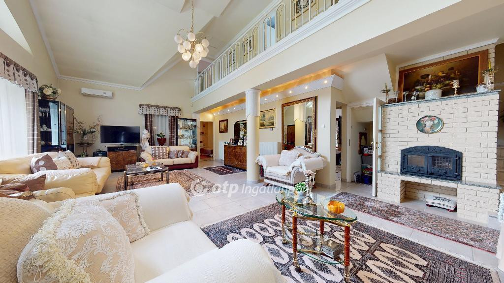 - teljes üvegfelületű méretes (55 nm) napfényes galériás nappali kandallóval, klímával, medencére nyitható kertkapcsolattal, mely különleges térérzetet és eleganciát biztosít