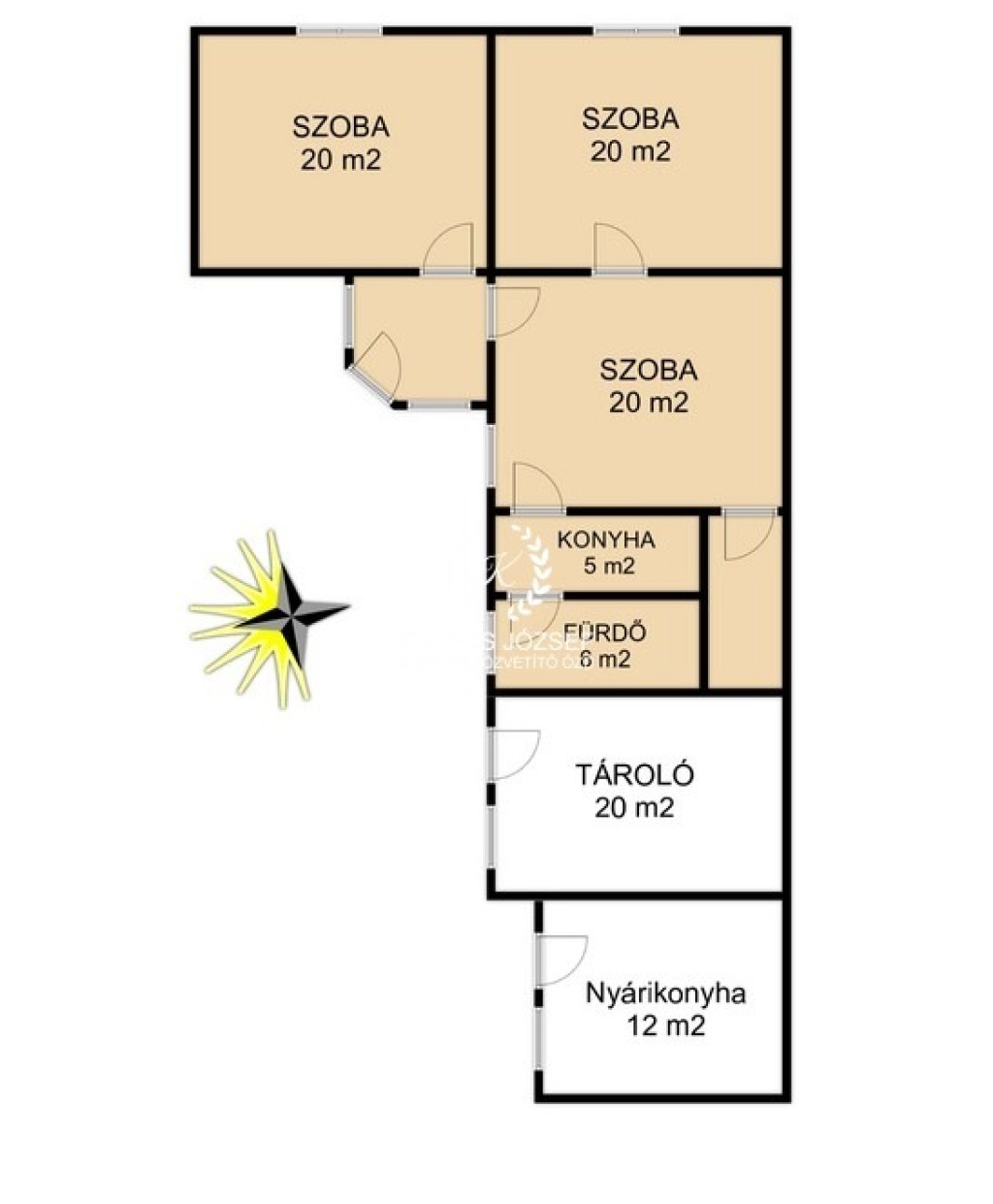 3 szoba, fürdőszoba, konyha és kamra alkotja a 80 m2-es családi házat, de ahogy az alaprajzon is látszk, ezt ki lehet egészíteni még 1-2 szobával, ha szükség van rá! Falazata tágla és vályog, tetőfedése cserépfedés, fűtése gázkonvektor és van egy vegyes tüzelésű kályha a középső szobában. Pár éve az összes nyílászárót már korszerű műanyagra cserélték és a konyha felújítása is tavaly készült el.