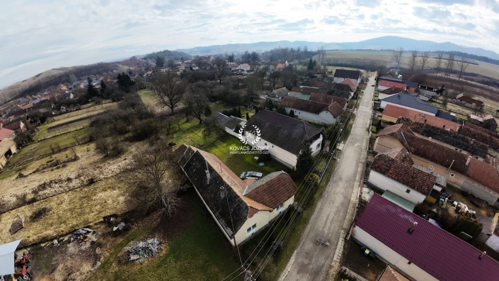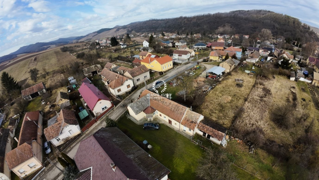 Az ingatlan egy csendes utcában, közel a falu központjához helyezkedik el 1720 m2-es sík, körbekerített telken.