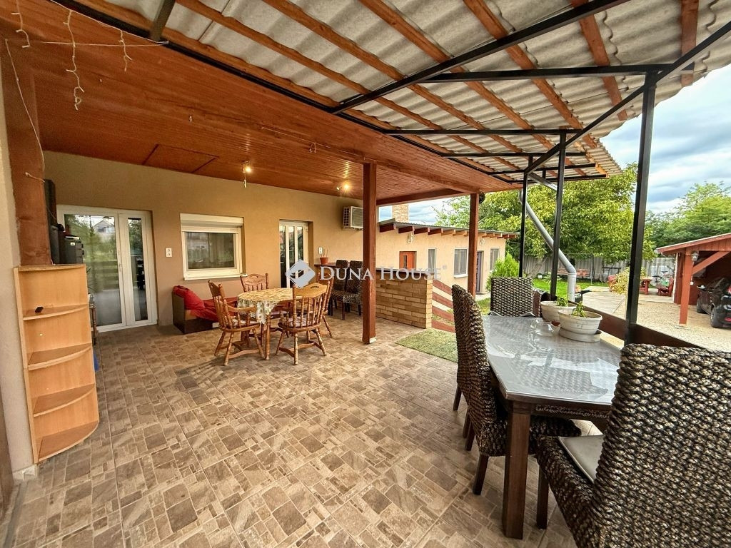Az ingatlan minden részletében a praktikum és a kényelem érvényesül. Távirányítós elektromos kapun keresztül közelíthető meg az udvar, ahol fedett autóbeálló, rendezett kert, fúrt kút, valamint pince is megtalálható. A melléképület külön bejárattal rendelkezik, így önálló lakrésznek is kiválóan alkalmas.