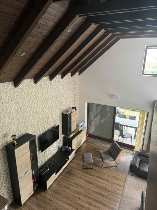 A belső kialakítás is nagyon igényes.Alsószinten előszoba,tágas nappali-konyha étkezővel,fedett terasz,közvetlen kijárat a nappliból.