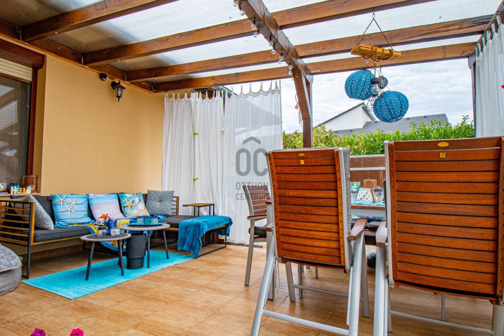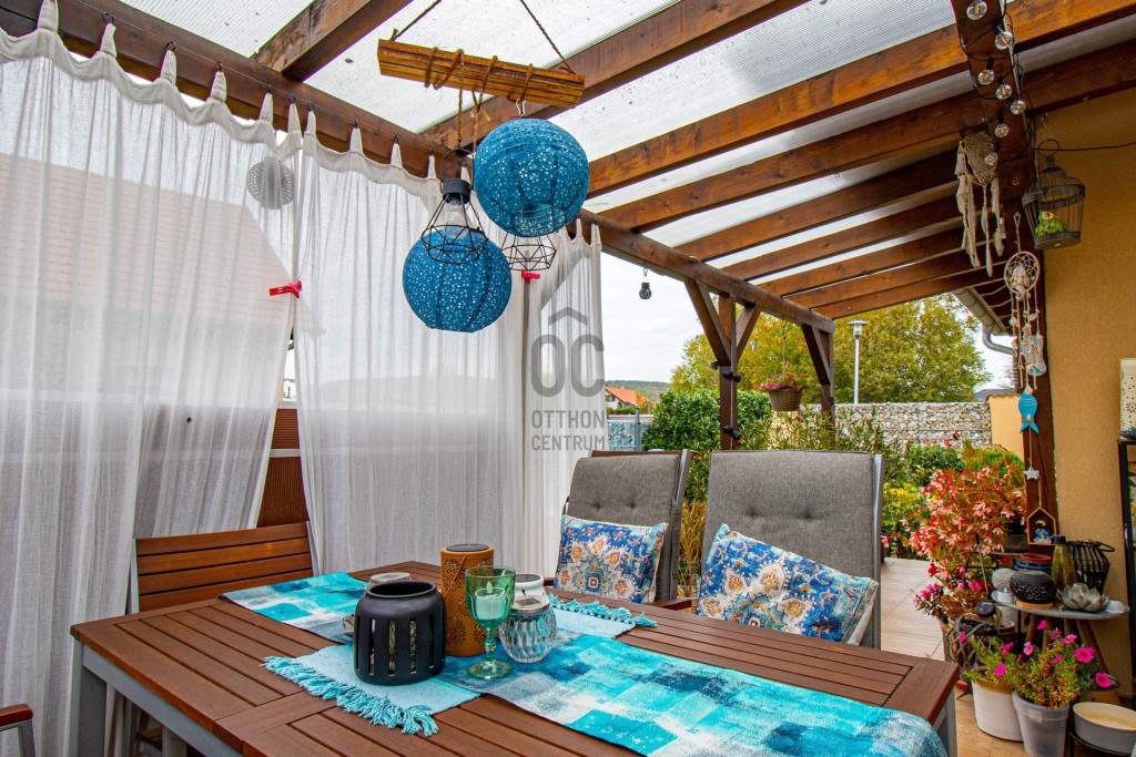 25 m²-es fedett terasz dombokra és naplementére néző csodás kilátással