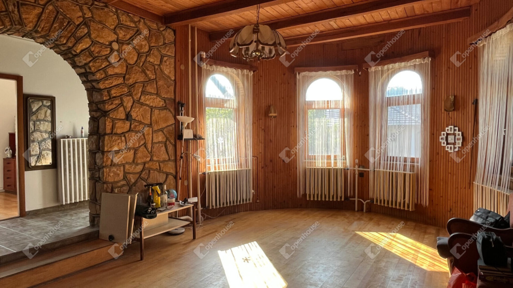 - nagy belmagasságú, fagerendás nappali, íves falakkal