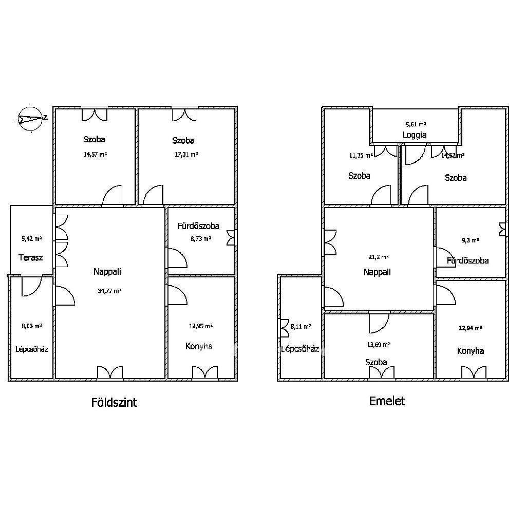 Az alsó szinten nagy nappali, 2 szoba, konyha, fürdőszoba, míg az emeleten nappali, 2+1/2 szoba, konyha és fürdőszoba található.