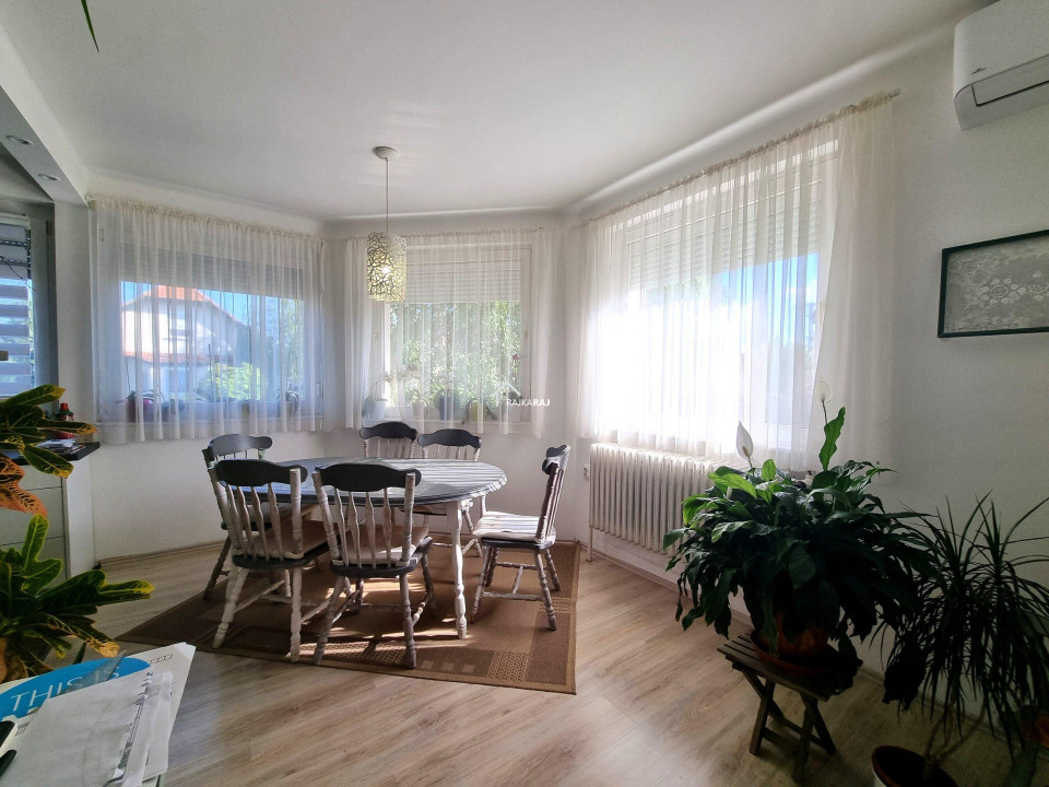 Az ablakok vegyesen fa és műanyagok. A fűtés kondenzációs gázkazán radiátoros hőleadással + vegyes tüzelés + elektromos fűtőpanelek a pincében valamint 3 db inverteres klíma is melyek használata a napelemekkel költségmentes.. A pince szintén lakótér. Az udvarban 16 m2-es terasz kap helyt. A pincében egy mélygarázs is ki lett alakítva az utcafront felől. Az udvarban 13 m2-es könnyűszerkezetes melléképület áll. Az udvar öntözése fúrt kútról megoldott.