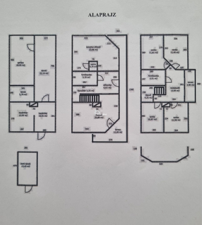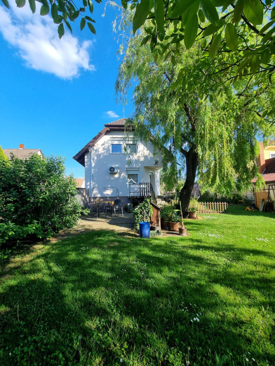Hegyeshalom csendes utcájába kínálom Önöknek ezt az 1991-ben épült kétszintes téglaházat. Az épület DK-i fekvésű. A két lakószint 134 m2 összterületű + 67 m2 pince + 16 m2 terasz +erkély + mélygarázs. A telek 810 m2. A tető cserép tető, a ház homlokzati szigetelése pedig 5+12 grafitos. 2022-ben elektromos vezetékcsere történt. A ház területe alatt 67 m2-es lakható pince található. A tetőre felszerelt 14 db 430 wattos napelem teljesen lefedi a villanyszámlát és a klímák használatát is.