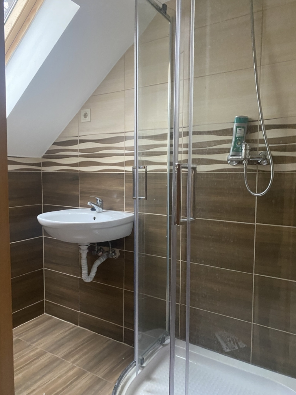 -emeleti részen: konyha-étkező, 2 szoba, fürdőszobák, wc-k